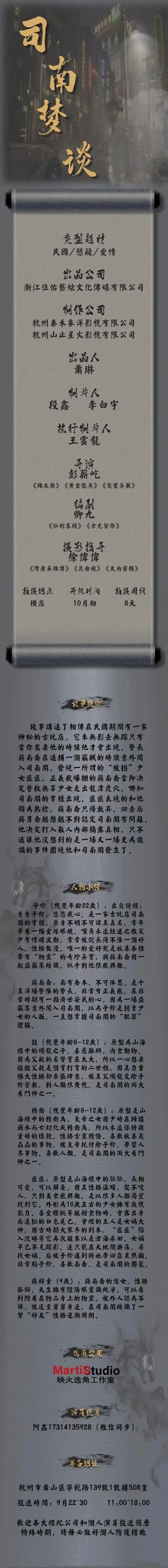 出品公司:北京不醉二厂影规传媒文化有限公司、北京盛世文和文化传媒有限公司、奇雨影视文化传媒(辽宁)有限责任公司