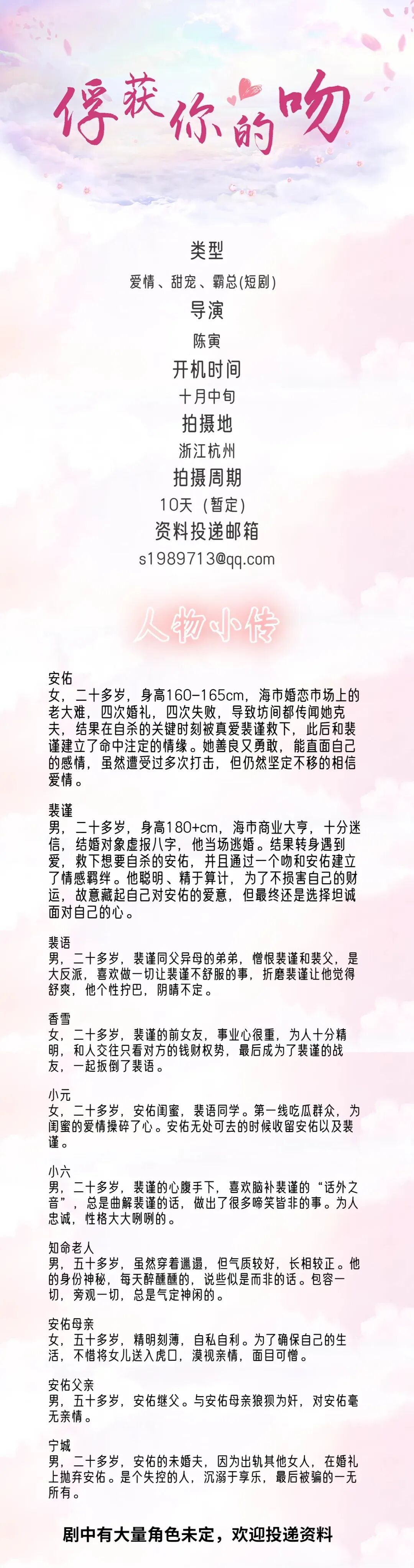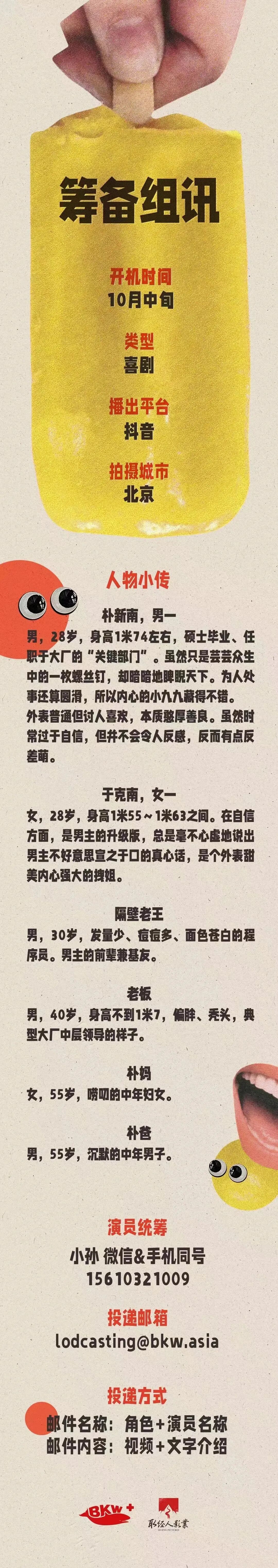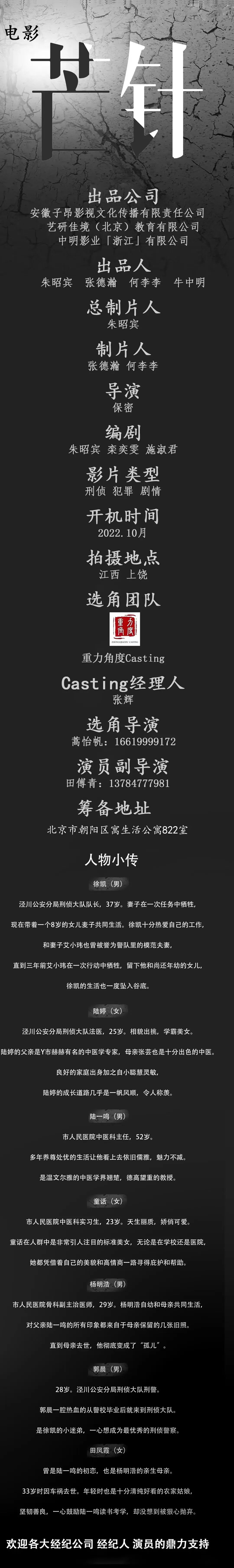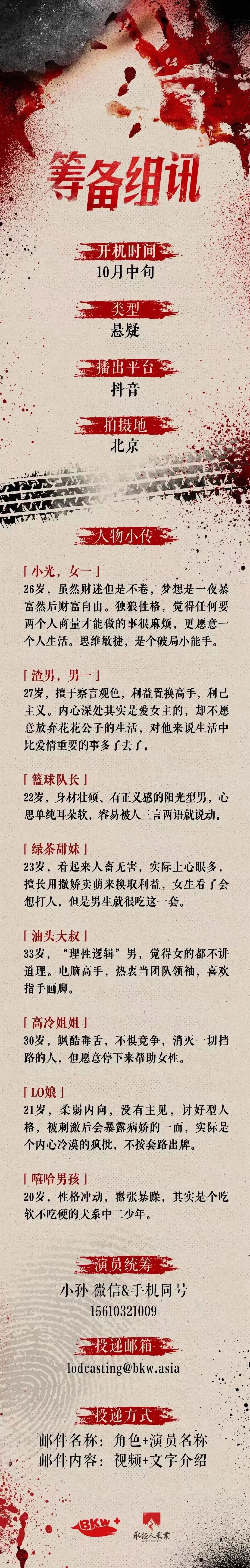 选角联系人:大粥 18513112110(同微信)