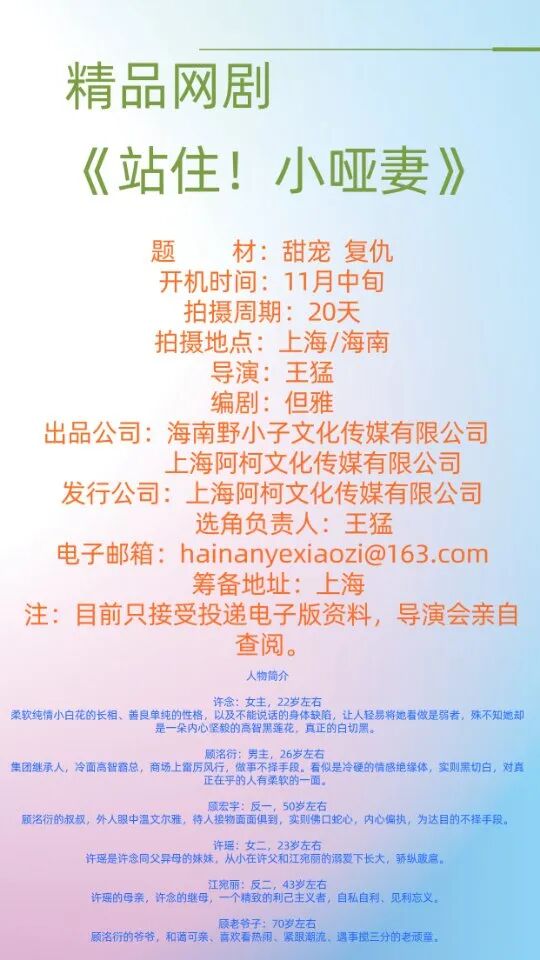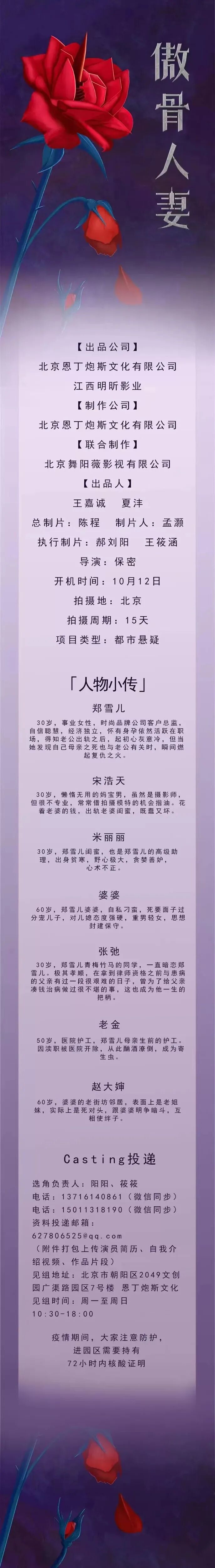 本栏目发布组讯由小编采集与业界共享,组讯如有变化请以实际情况为准。如果遇到剧组收费情况,请谨慎对待并私信官微@戏客Seeker,我们会公示问题组讯并及时处理。谢谢。