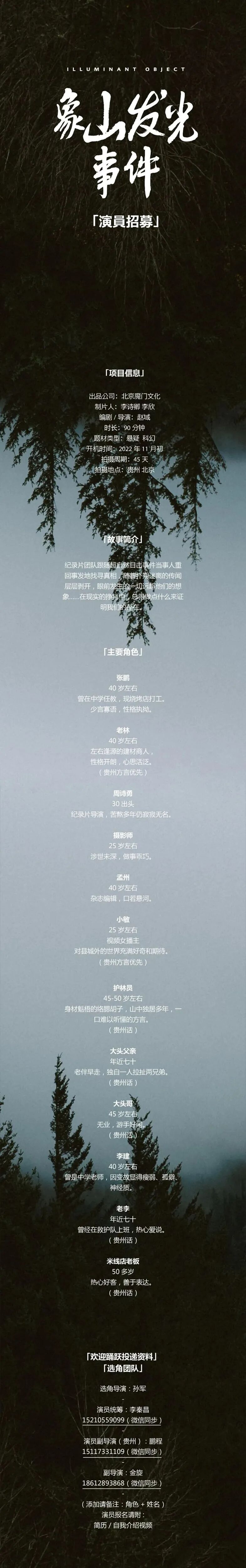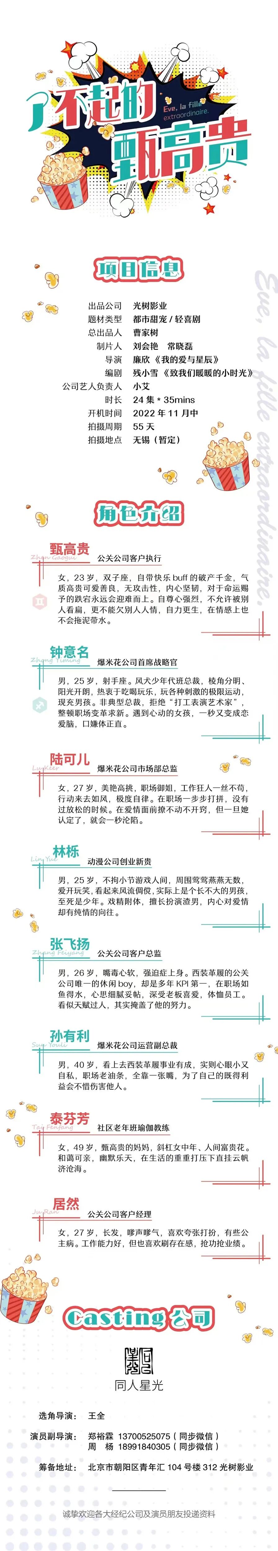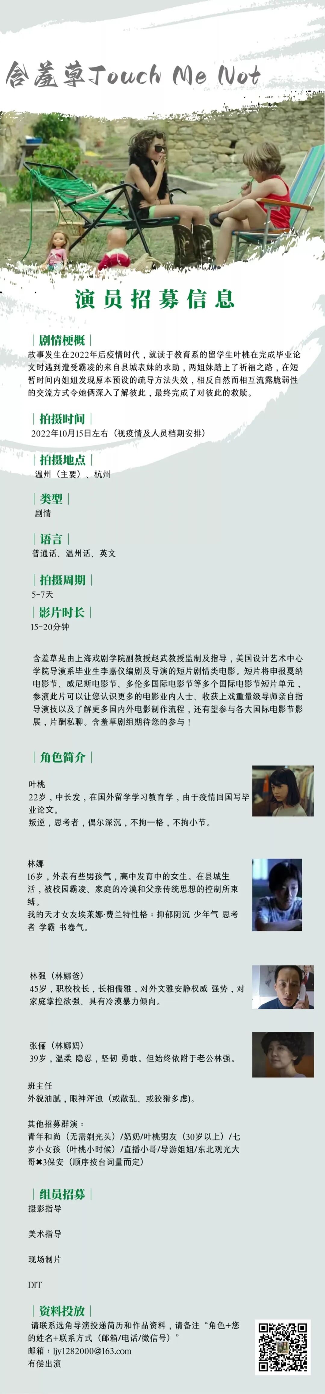资料投放:请联系选角导演投递简历和作品资料,请备注“角色+您的姓名+联系方式(邮箱/电话/微信号)”有偿出演