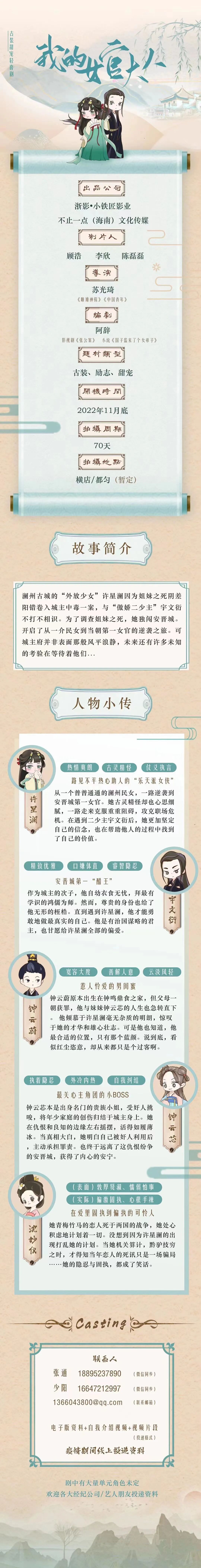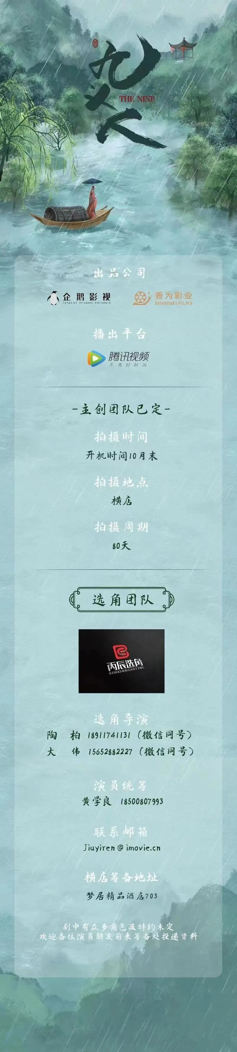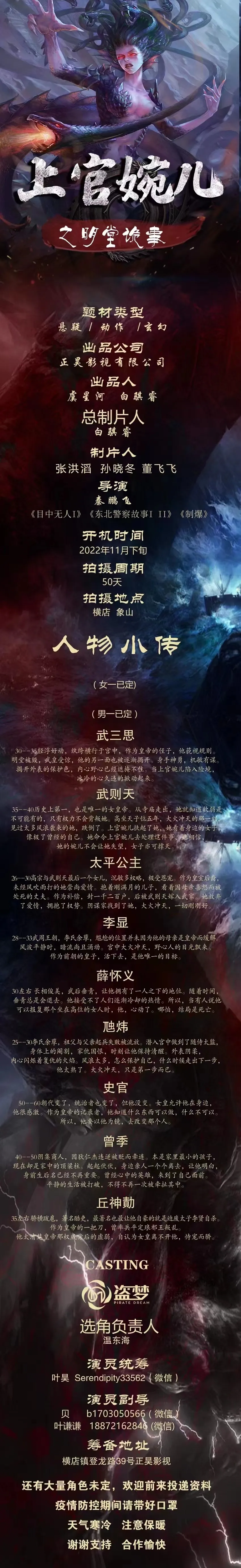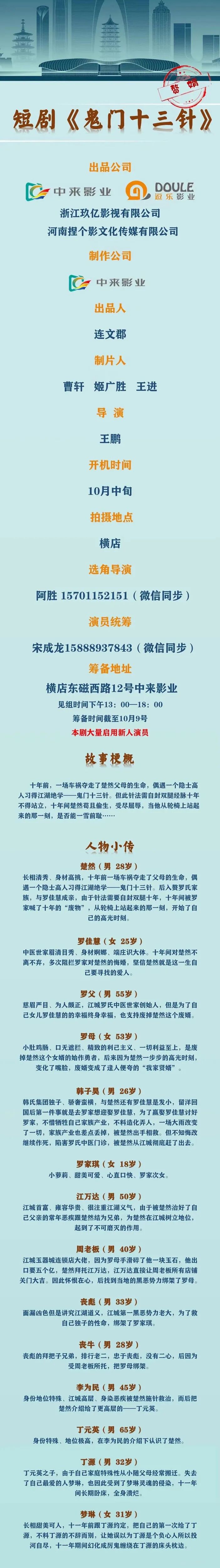 剧中有众多角色及特约未定,欢迎各位演员朋友前来筹备处投递资料。