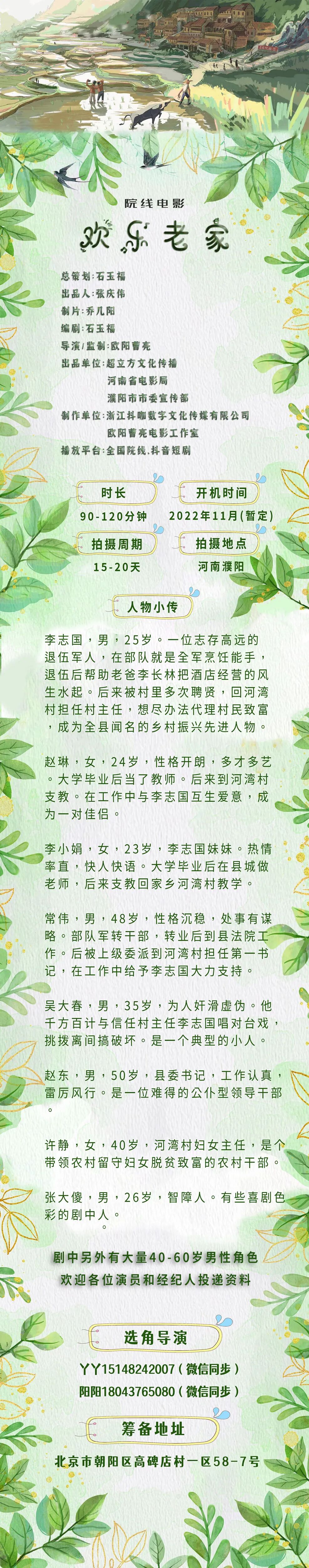 选角导演:何莲 18231451113(微信同步)
