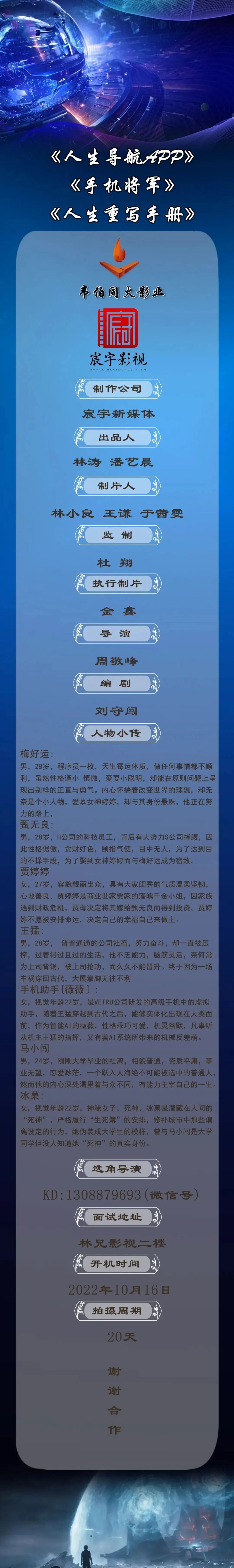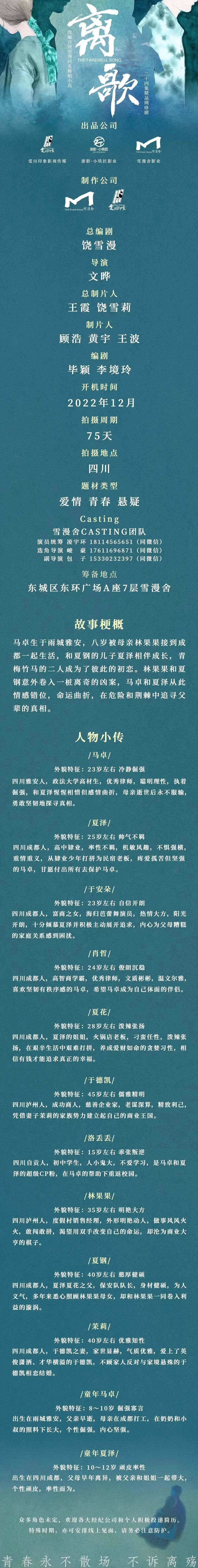 本栏目发布组讯由小编采集与业界共享,组讯如有变化请以实际情况为准。如果遇到剧组收费情况,请谨慎对待并私信官微@戏客Seeker,我们会公示问题组讯并及时处理。谢谢。