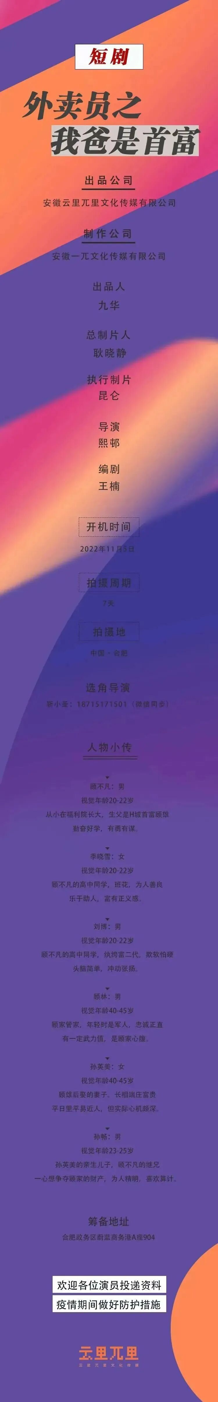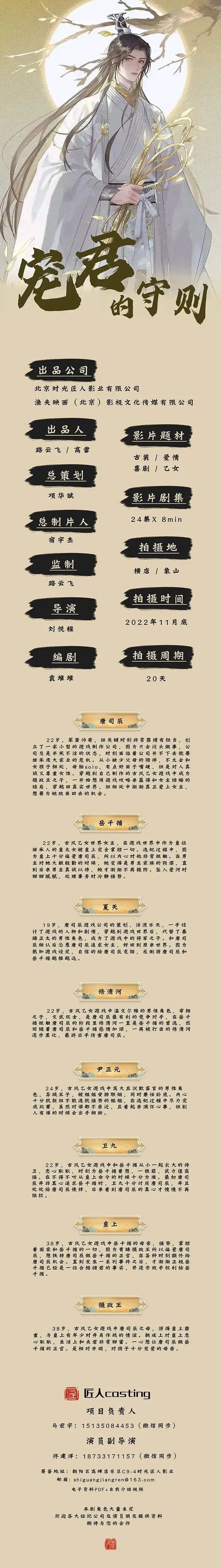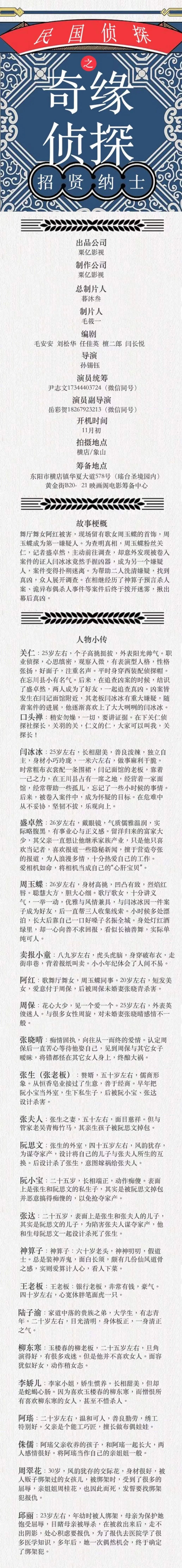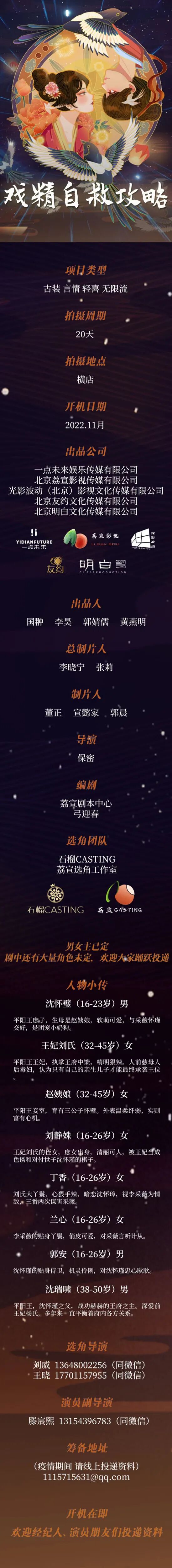 开机在即,欢迎经纪人、演员朋友们投递资料。