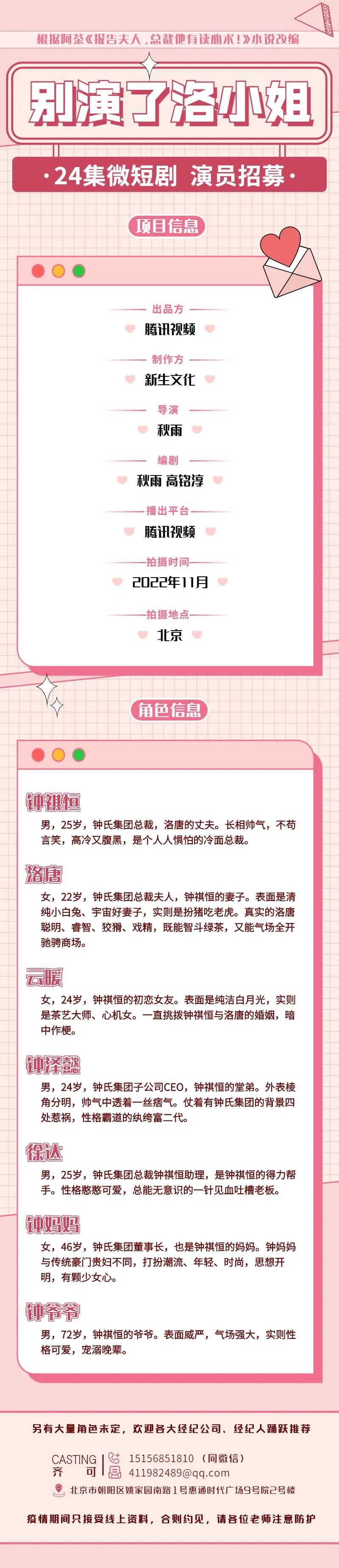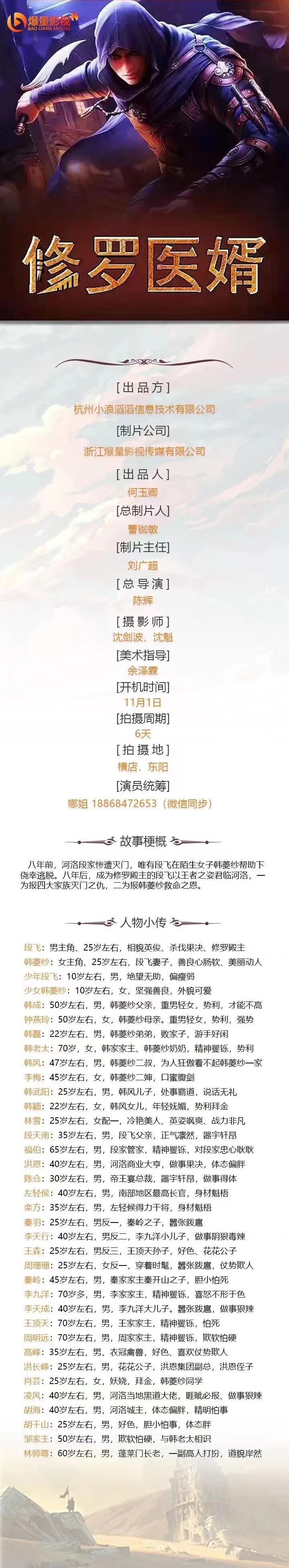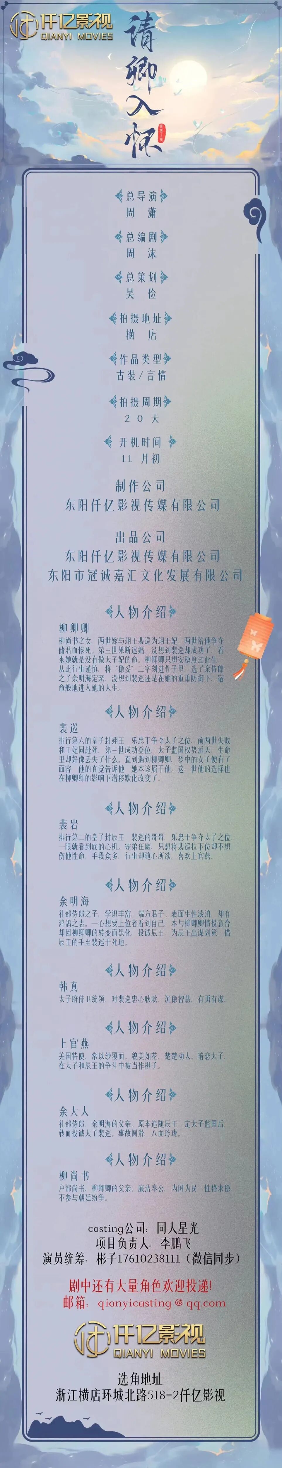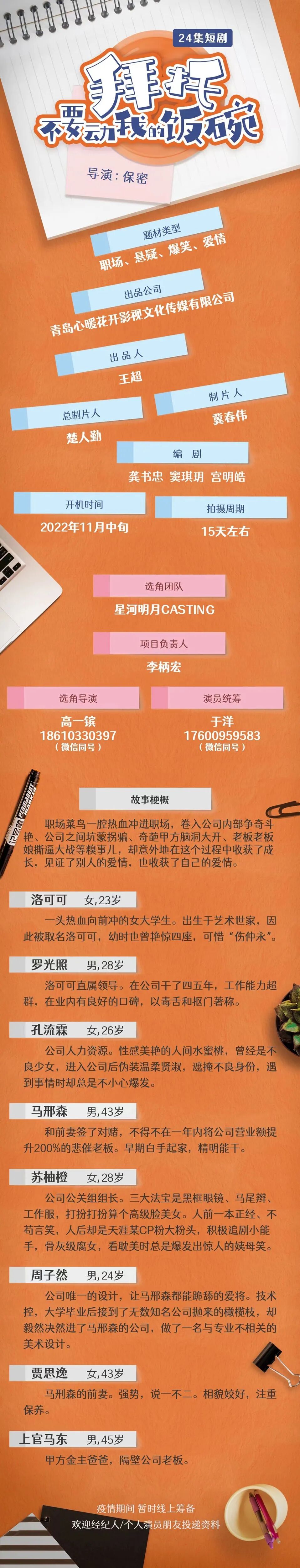 本栏目发布组讯由小编采集与业界共享,组讯如有变化请以实际情况为准。如果遇到剧组收费情况,请谨慎对待并私信官微@戏客Seeker,我们会公示问题组讯并及时处理。谢谢。