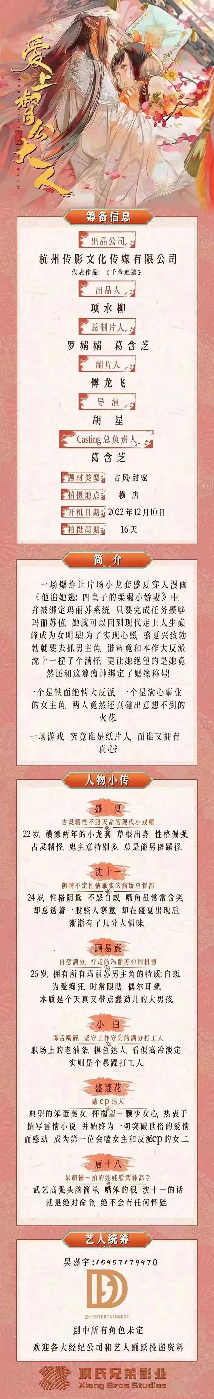 6、古风甜宠剧《爱上督公大人》【更新开机时间】