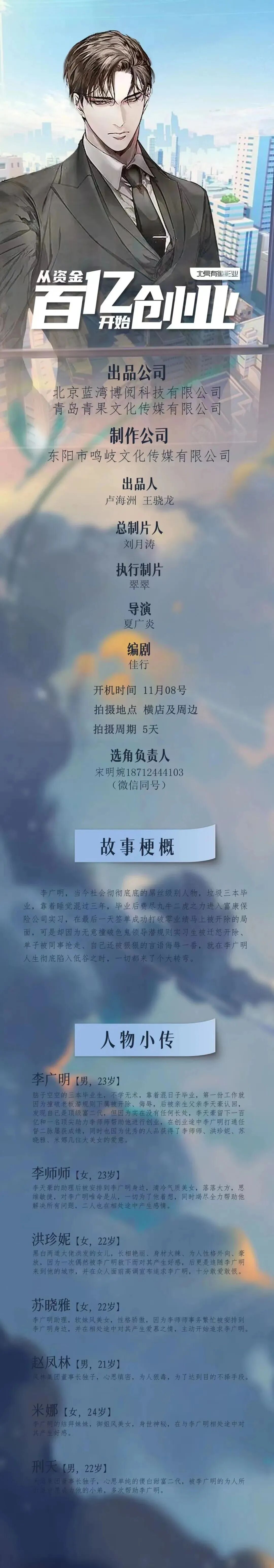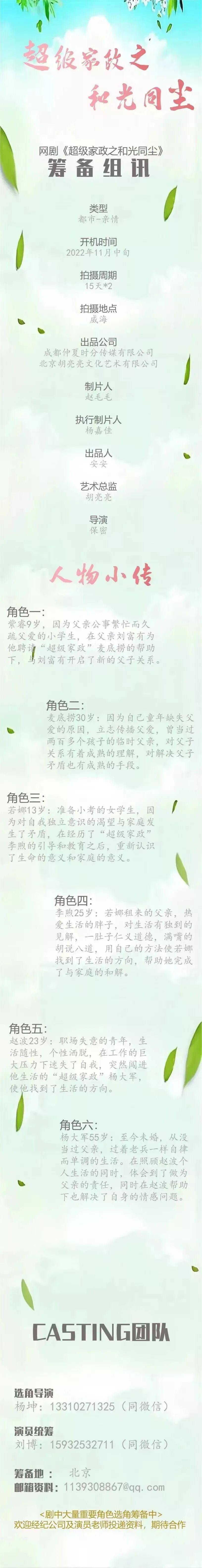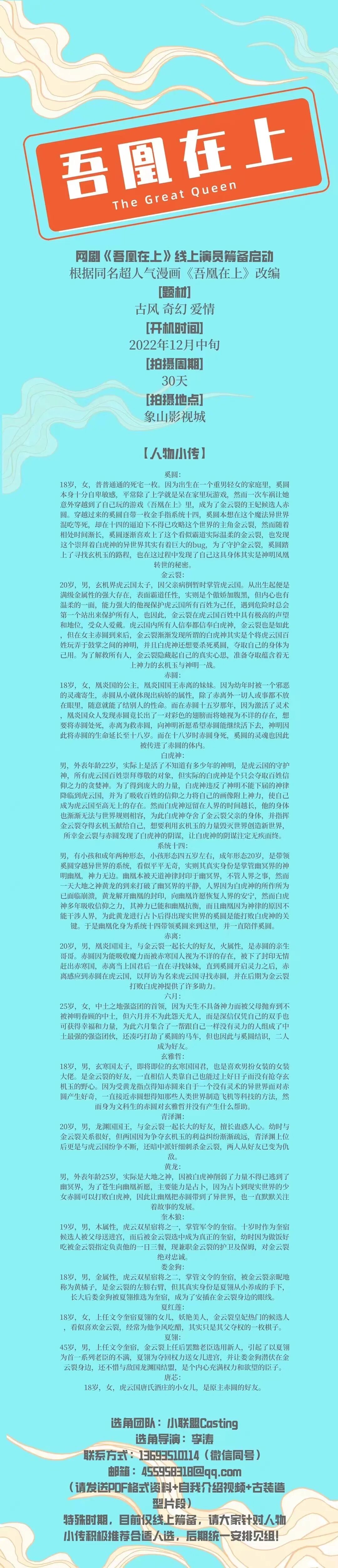 剧中大量重要角色选角筹备中,欢迎经纪公司及演员老师投递资料,期待合作。