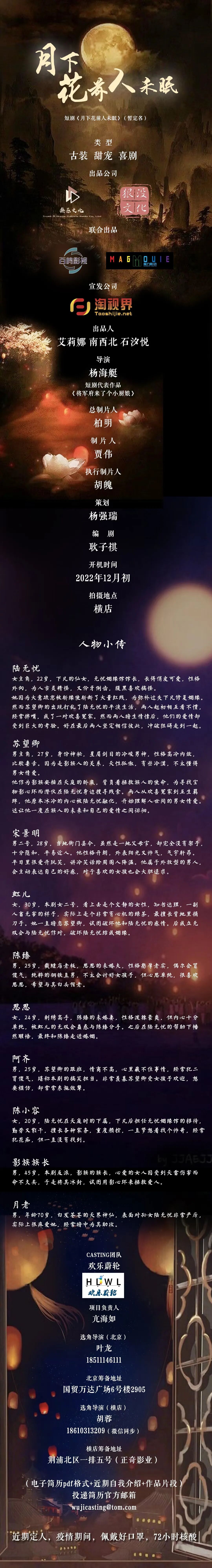 本剧还有其他角色待定,欢迎演员朋友们投递资料。