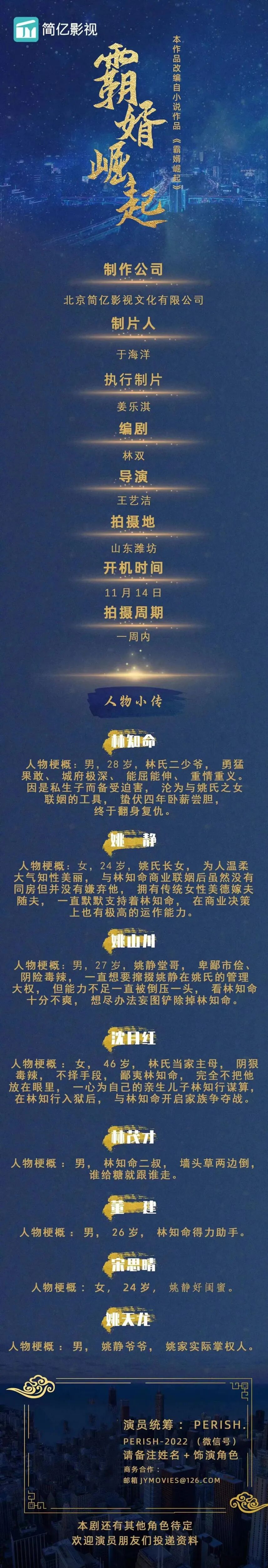 剧中有大量单元角色未定欢迎各大经纪公司、艺人朋友投递资料。
