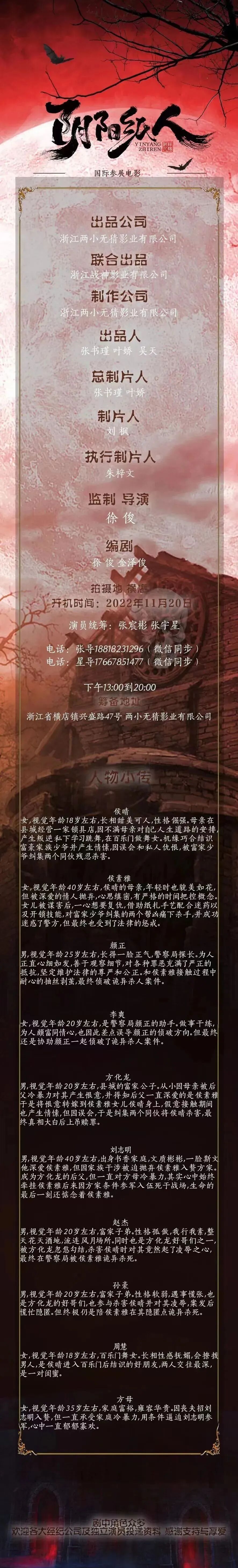本栏目发布组讯由小编采集与业界共享,组讯如有变化请以实际情况为准。如果遇到剧组收费情况,请谨慎对待并私信官微@戏客Seeker,我们会公示问题组讯并及时处理。谢谢。