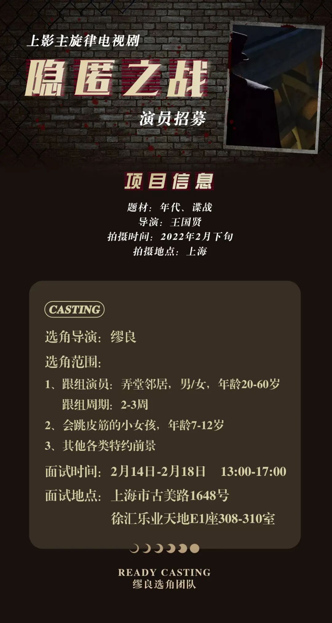 本栏目发布组讯由小编采集与业界共享,组讯如有变化请以实际情况为准。如果遇到剧组收费情况,请谨慎对待并私信官微@戏客Seeker,我们会公示问题组讯并及时处理。谢谢。