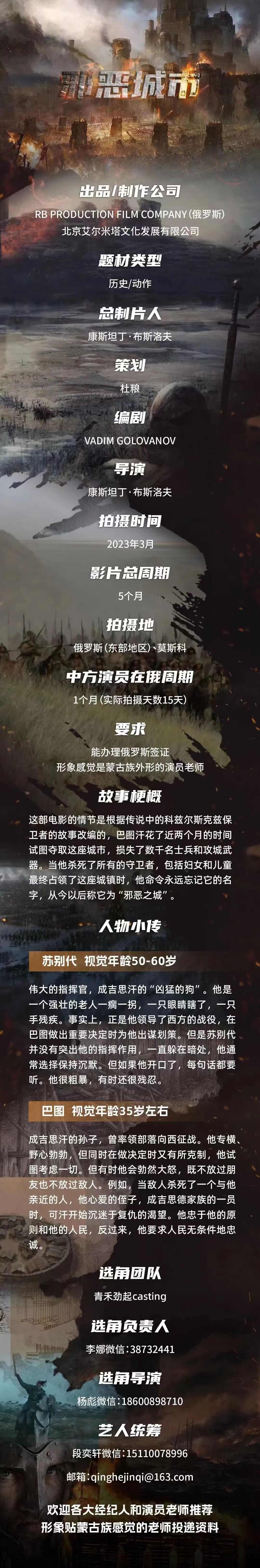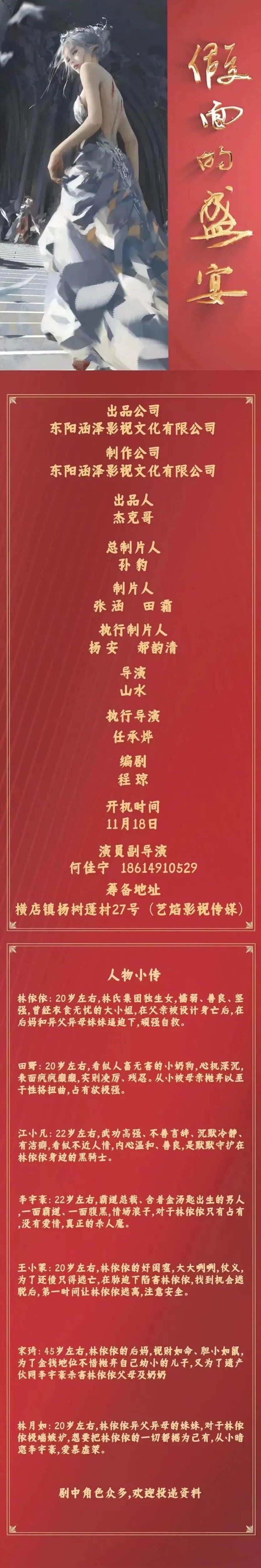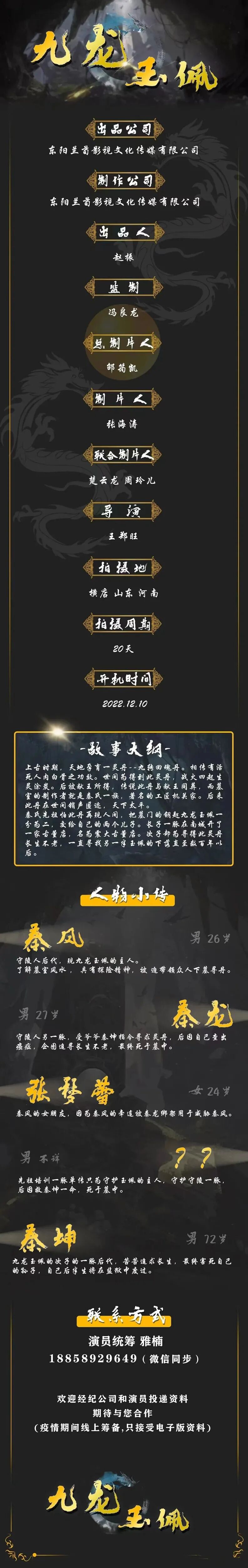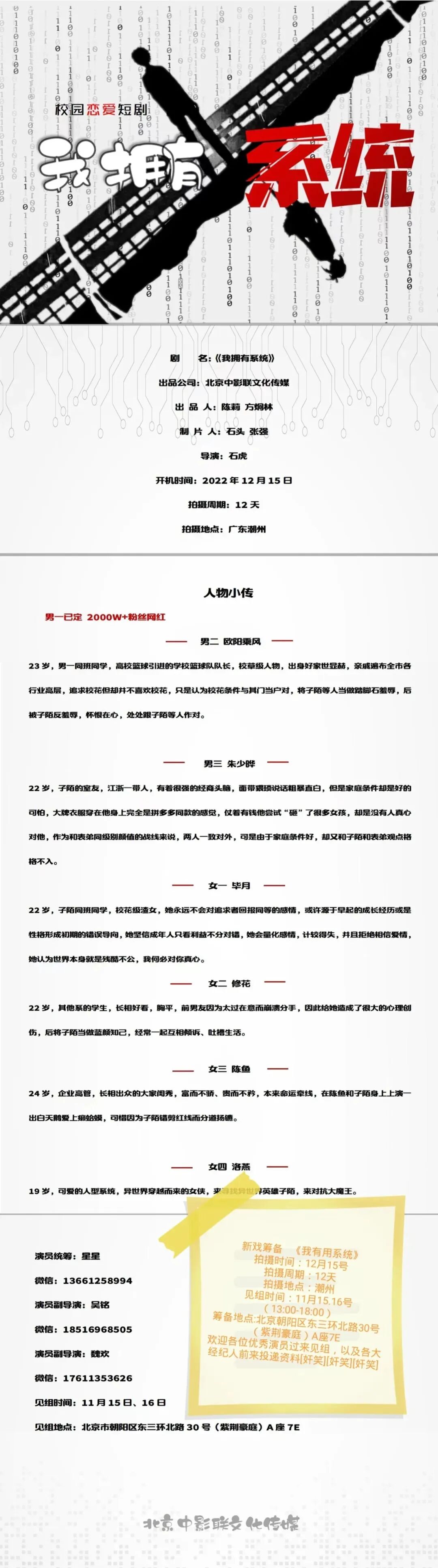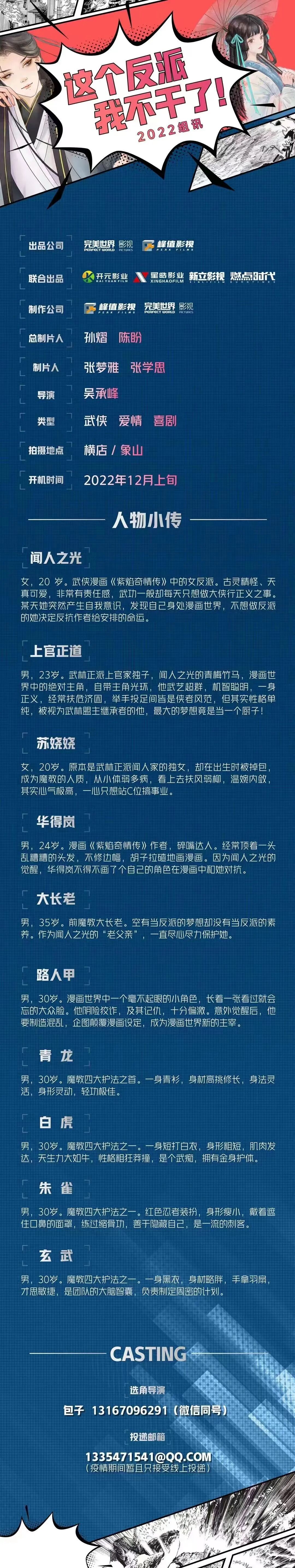 剧中有大量角色尚未敲定,欢迎各大经纪演员老师前来投递资料