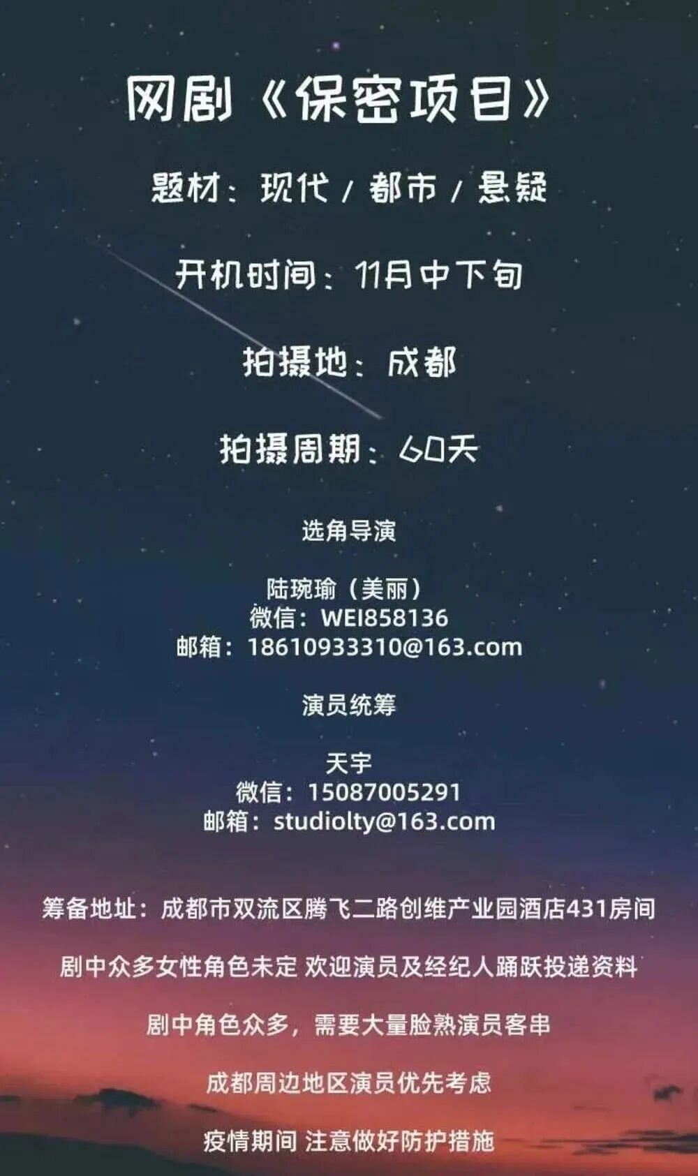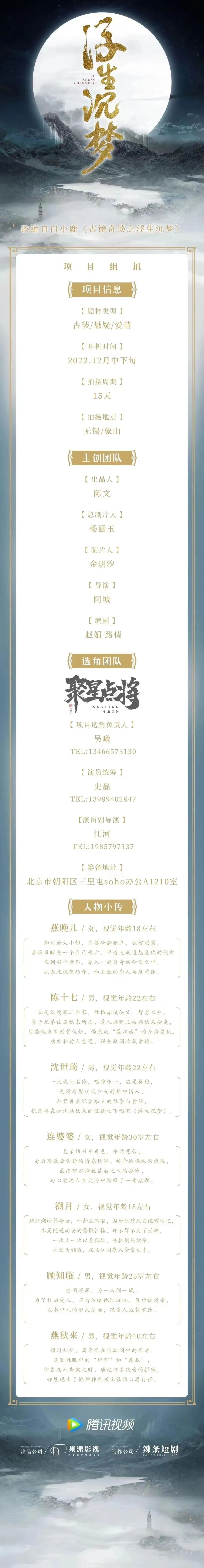 本栏目发布组讯由小编采集与业界共享,组讯如有变化请以实际情况为准。如果遇到剧组收费情况,请谨慎对待并私信官微@戏客Seeker,我们会公示问题组讯并及时处理。谢谢。