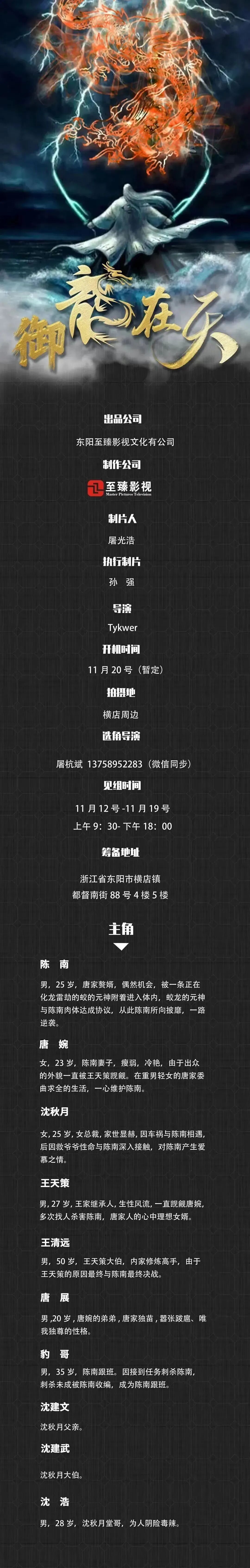 剧中不同年龄段角色众多,欢迎线上投稿资料,请各位演员经纪人进组