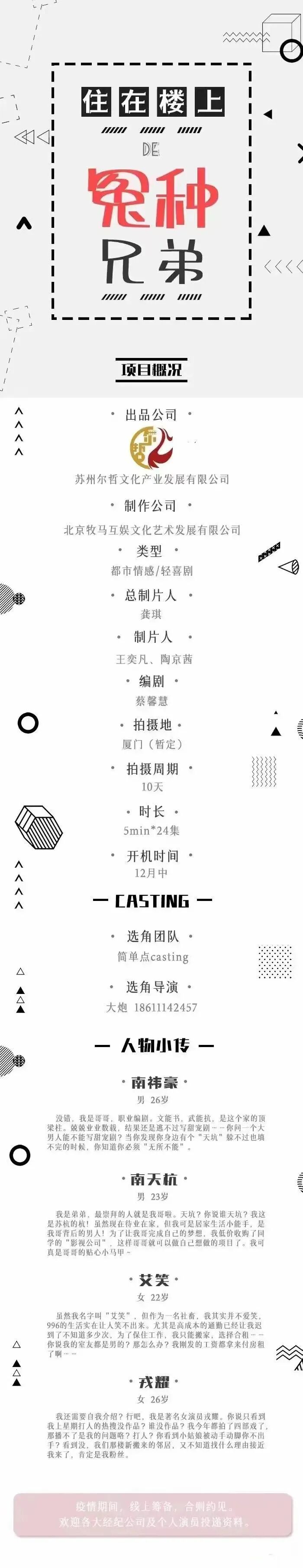 疫情期间,线上筹备,合则约见,欢迎各大经纪公司及个人演员投递资料。