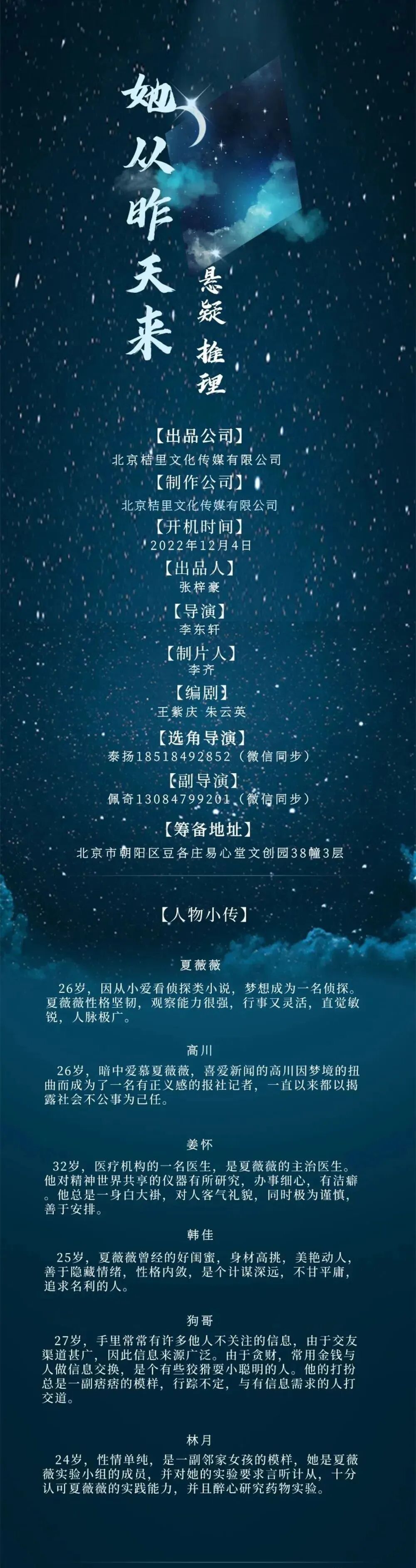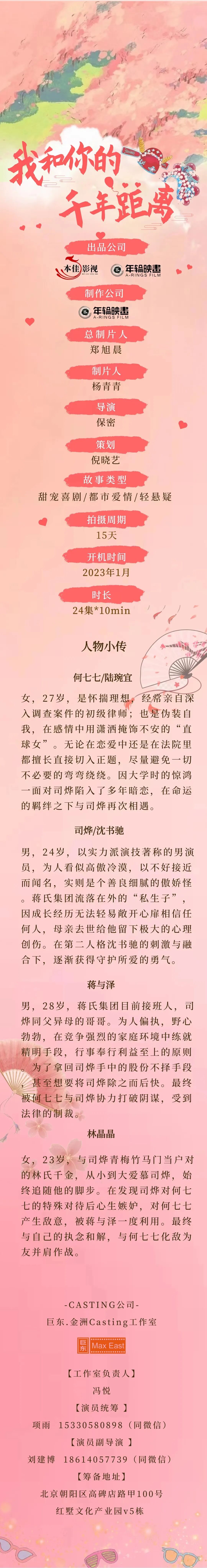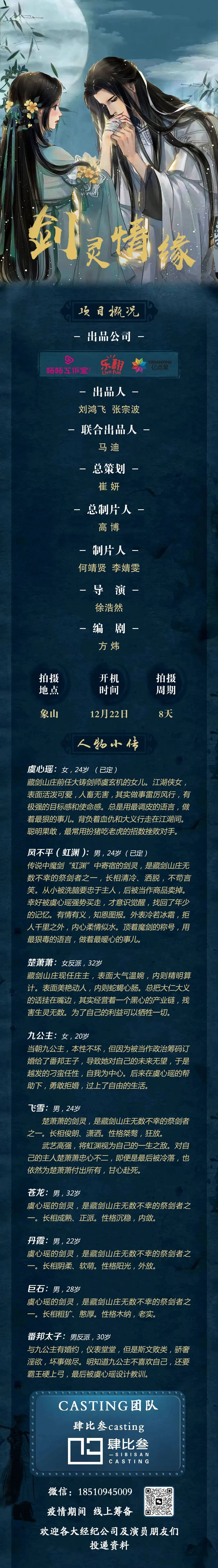 剧中众多角色未定,欢迎各位演员及经纪人老师前来筹备处投递资料,疫情期间,请大家注意防护。