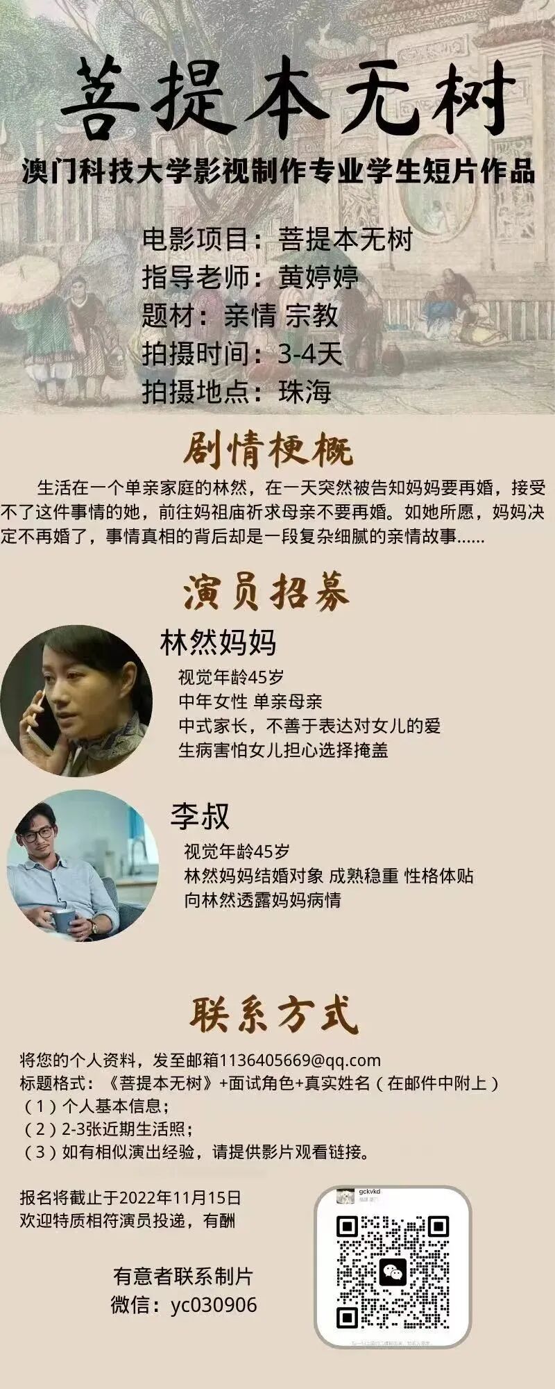 欢迎特质相符演员投递,有酬有意者联系制片。