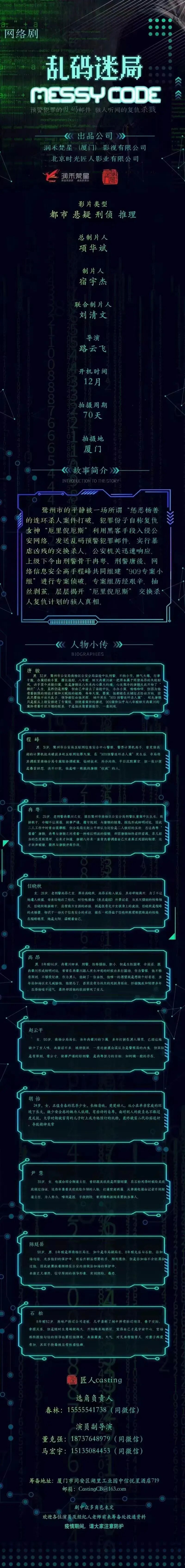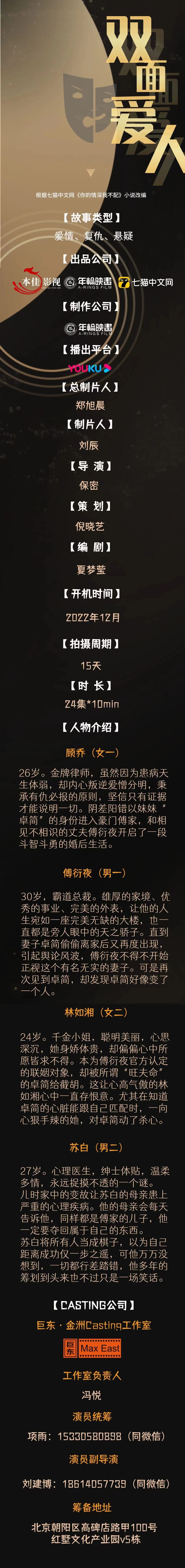 本栏目发布组讯由小编采集与业界共享,组讯如有变化请以实际情况为准。如果遇到剧组收费情况,请谨慎对待并私信官微@戏客Seeker,我们会公示问题组讯并及时处理。谢谢。