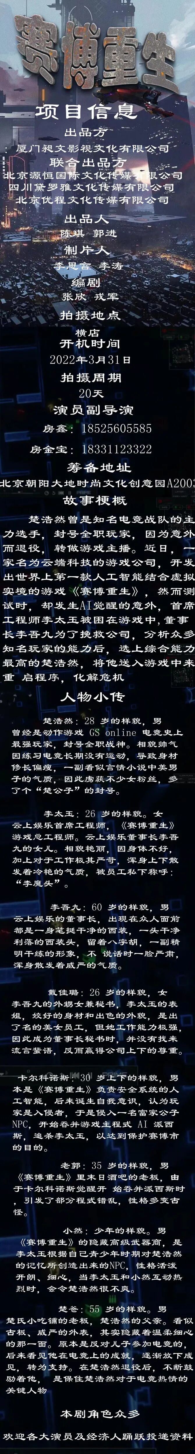 本栏目发布组讯由小编采集与业界共享,组讯如有变化请以实际情况为准。如果遇到剧组收费情况,请谨慎对待并私信官微@戏客Seeker,我们会公示问题组讯并及时处理。谢谢。