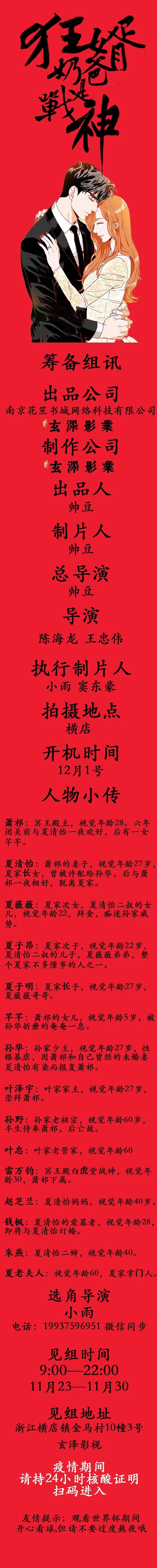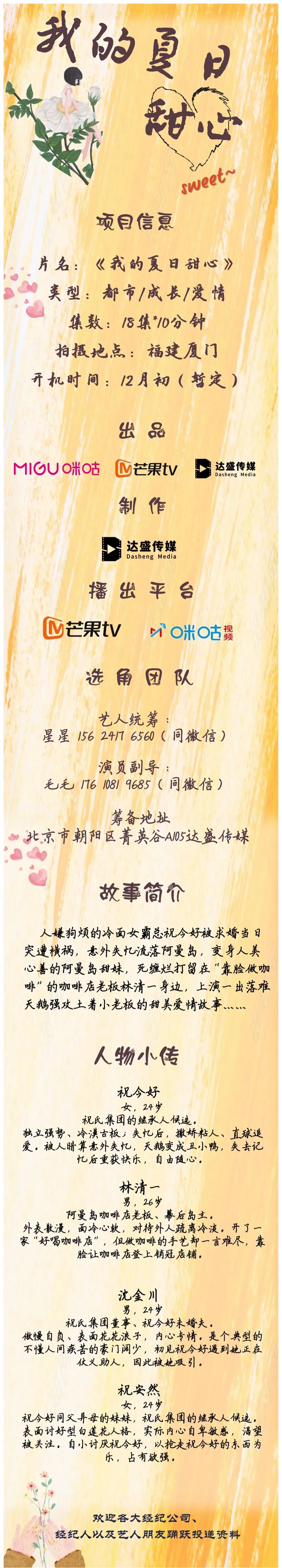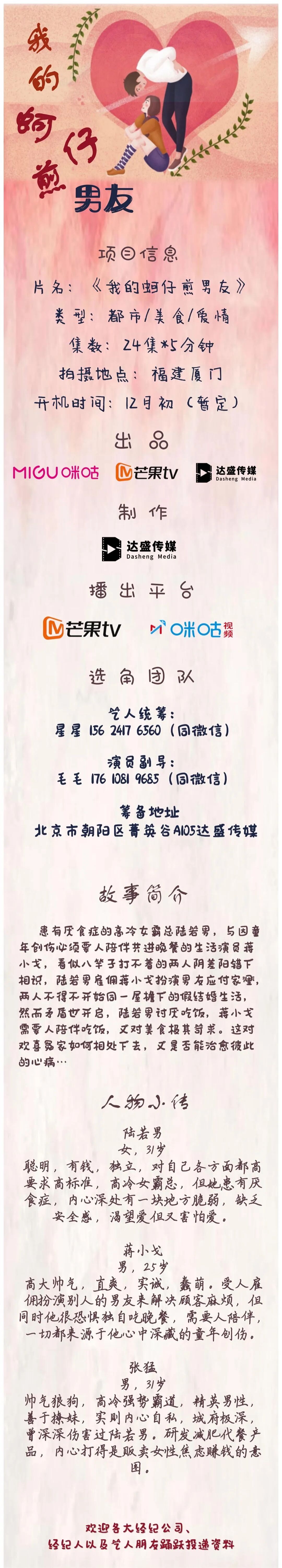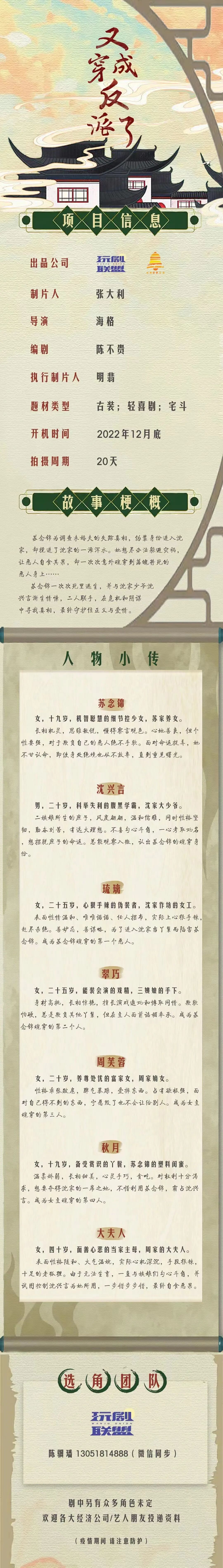 剧中另有众多角色未定,欢迎各大经纪公司、艺人朋友投递资料