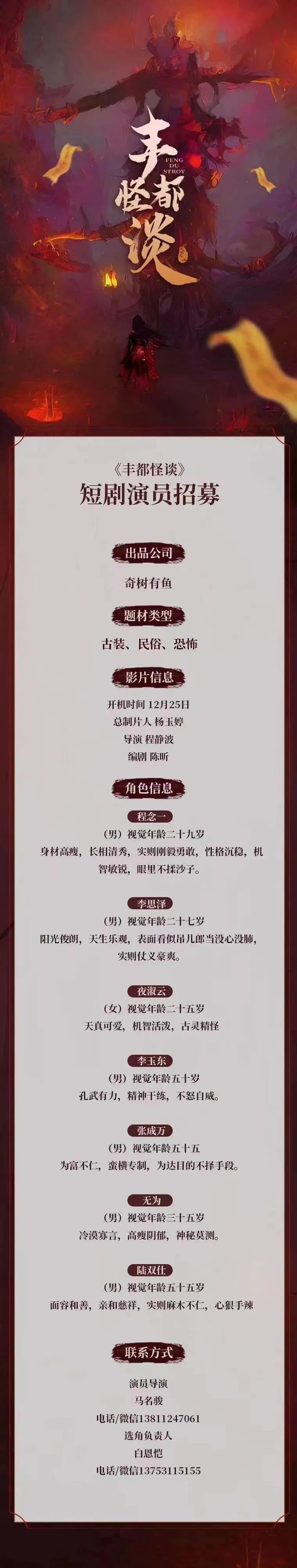 选角负责人:陈泽伦 18611965529 (不同步微信)