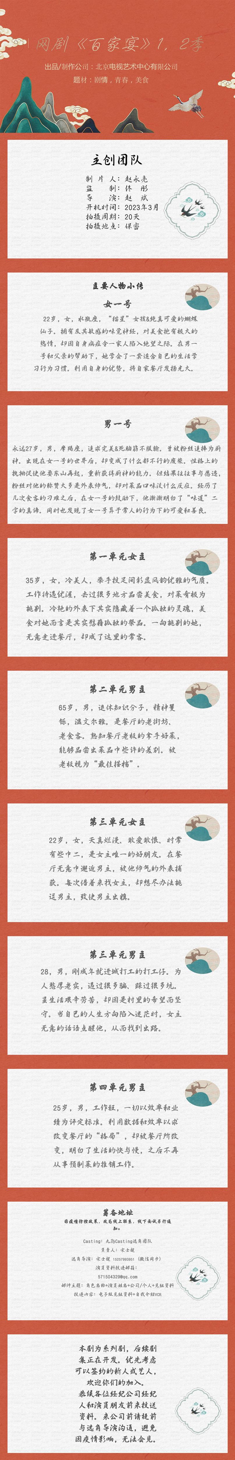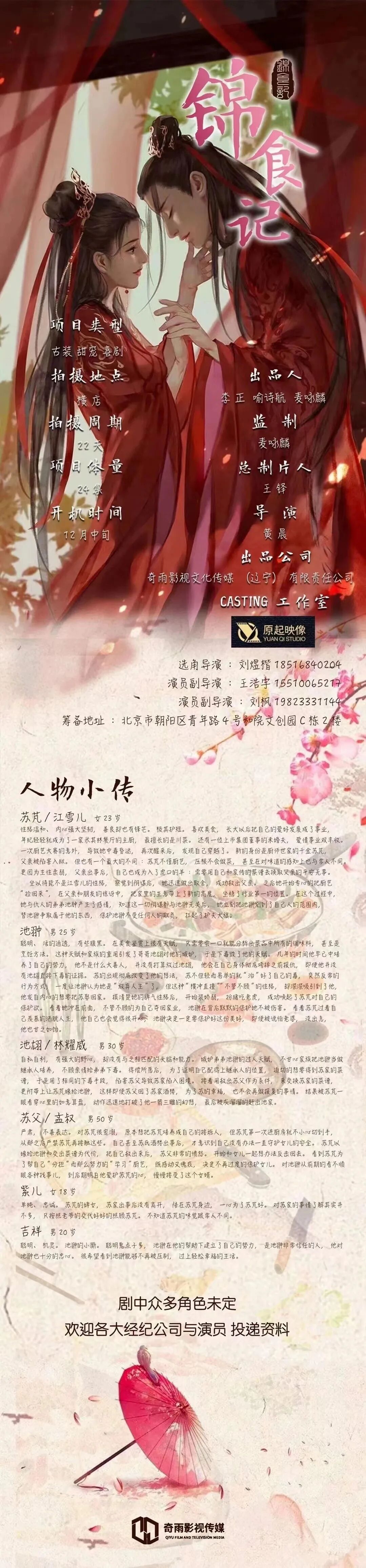 剧中众多角色未定,欢迎各大经纪公司与演员投递资料
