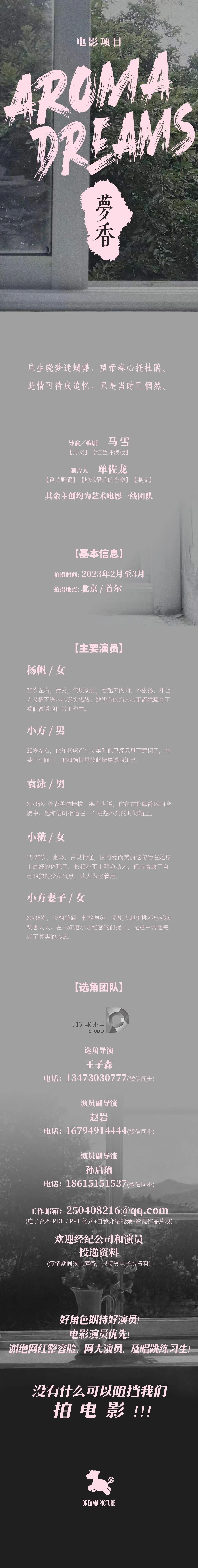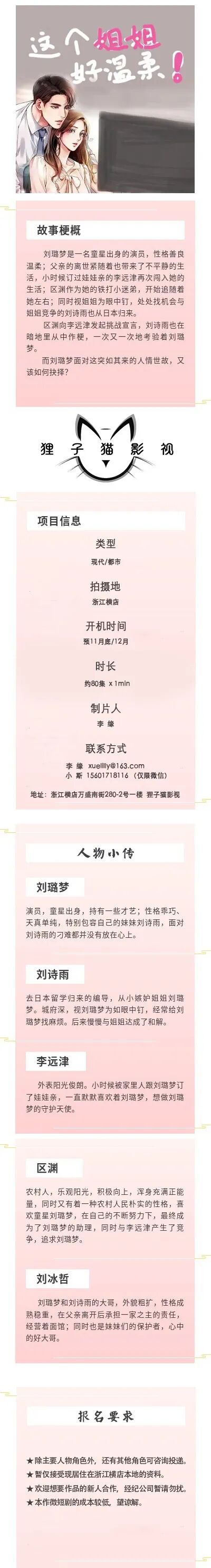 欢迎经纪公司和演员投递资料,谢绝网红整容脸、网大演员、及唱跳练习生!