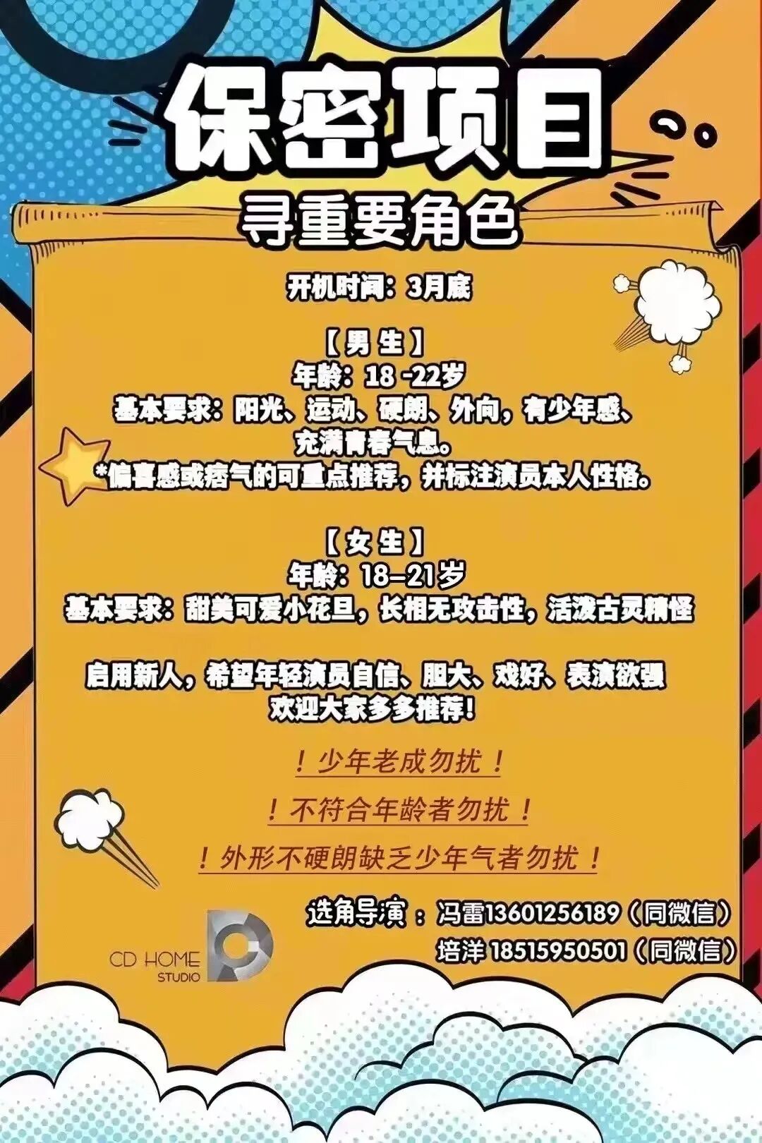 本栏目发布组讯由小编采集与业界共享,组讯如有变化请以实际情况为准。如果遇到剧组收费情况,请谨慎对待并私信官微@戏客Seeker,我们会公示问题组讯并及时处理。谢谢。