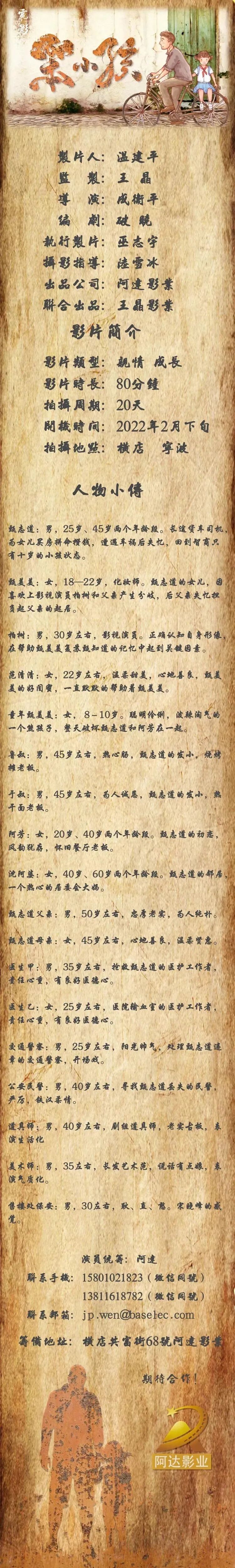 演员统筹:阿达 15801021823(微信同号)
