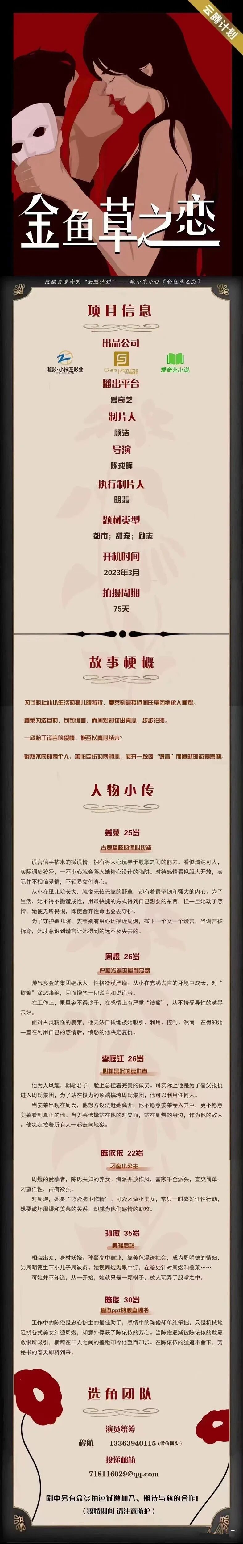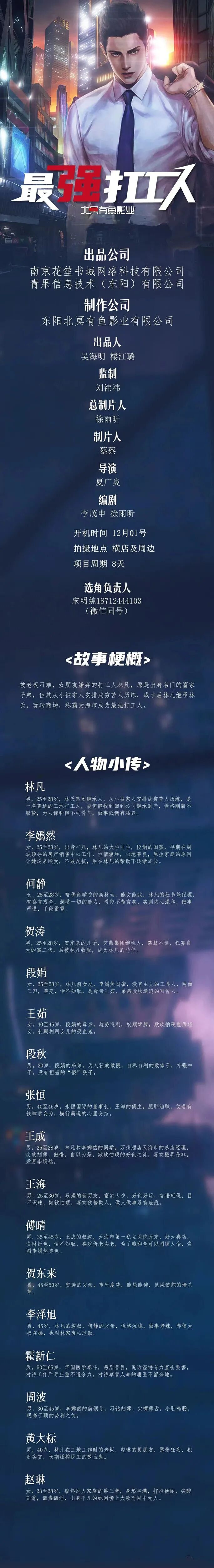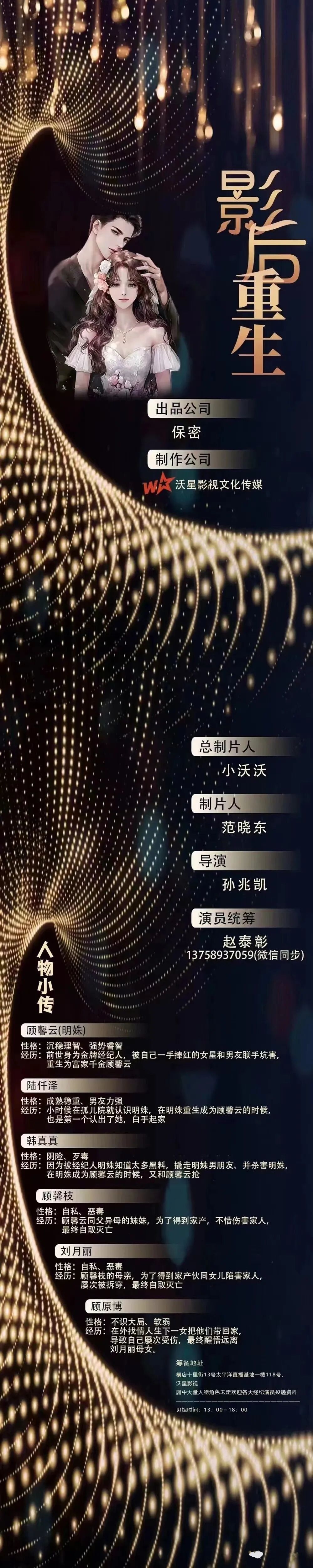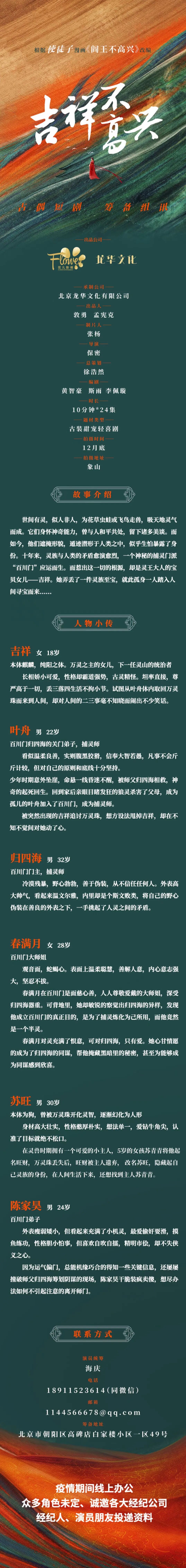 剧中大量人物角色未定,欢迎各大经纪演员投递资料