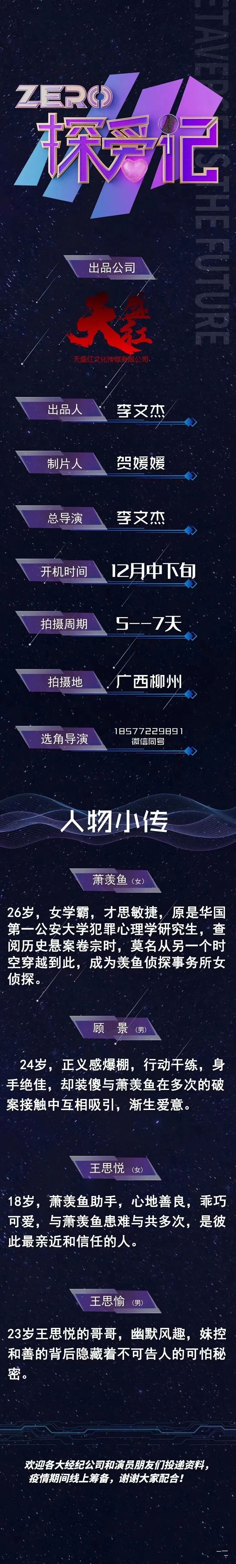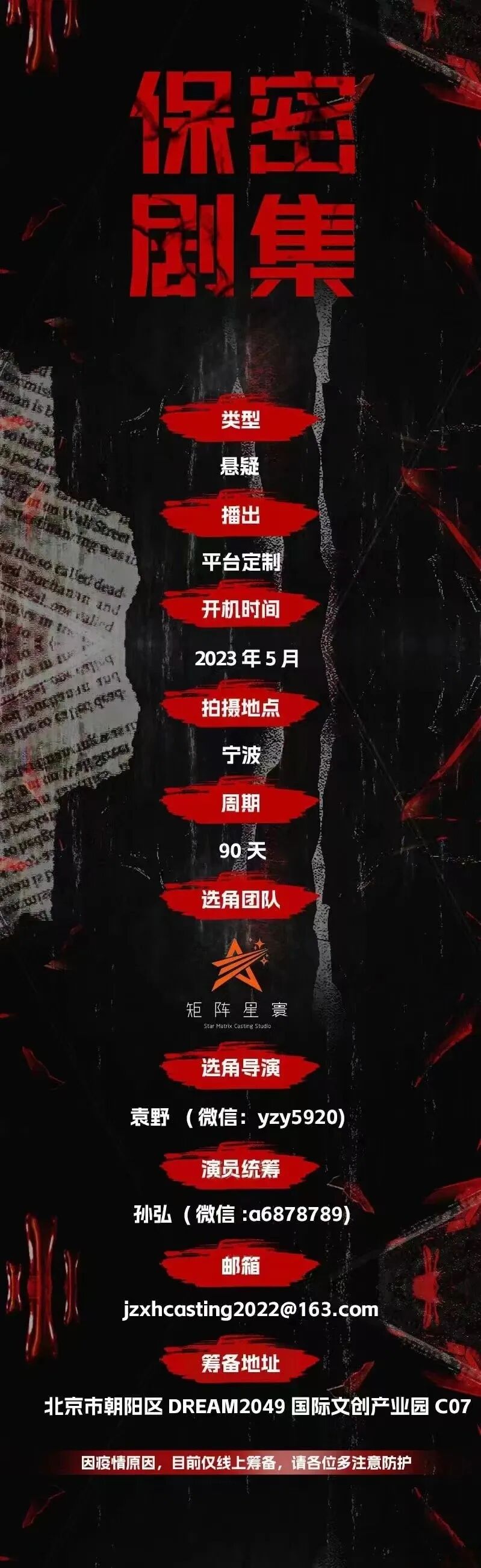 本栏目发布组讯由小编采集与业界共享,组讯如有变化请以实际情况为准。如果遇到剧组收费情况,请谨慎对待并私信官微@戏客Seeker,我们会公示问题组讯并及时处理。谢谢。