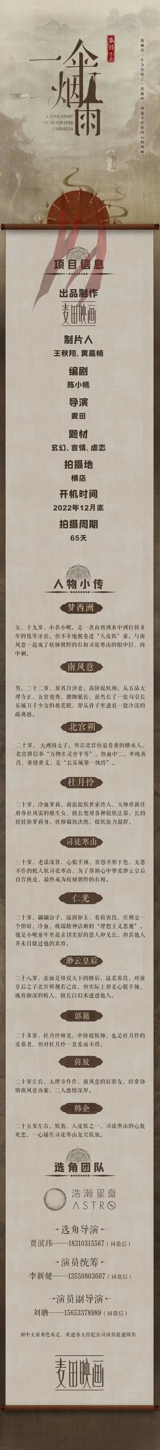 剧中大量角色未定,欢迎各大经纪公司演员投递简历