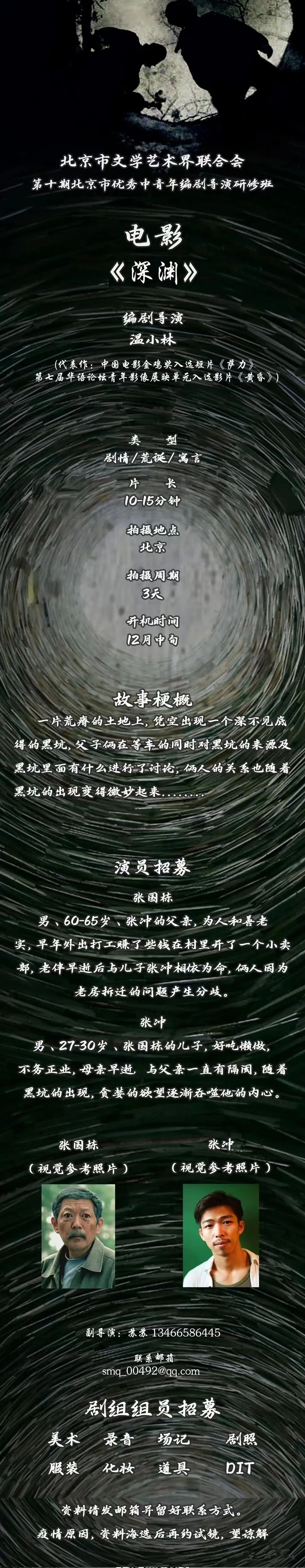 本栏目发布组讯由小编采集与业界共享,组讯如有变化请以实际情况为准。如果遇到剧组收费情况,请谨慎对待并私信官微@戏客Seeker,我们会公示问题组讯并及时处理。谢谢。