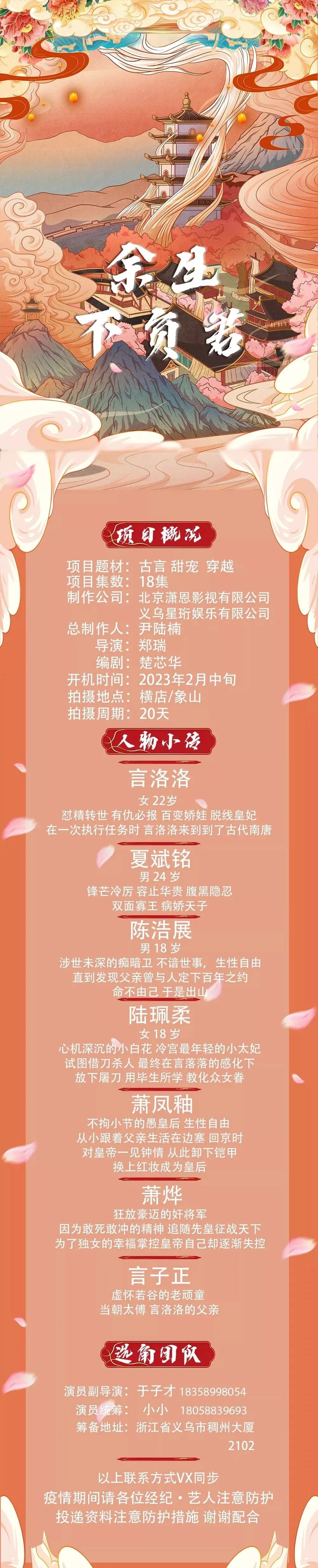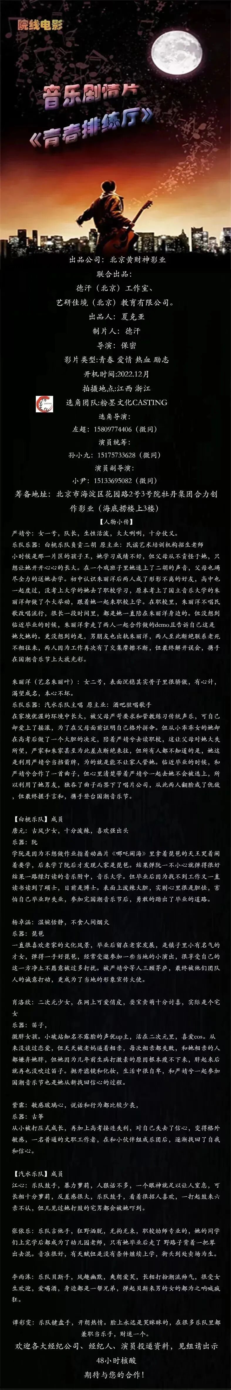 剧中角色众多,欢迎经纪公司和演员投递资料,期待合作!