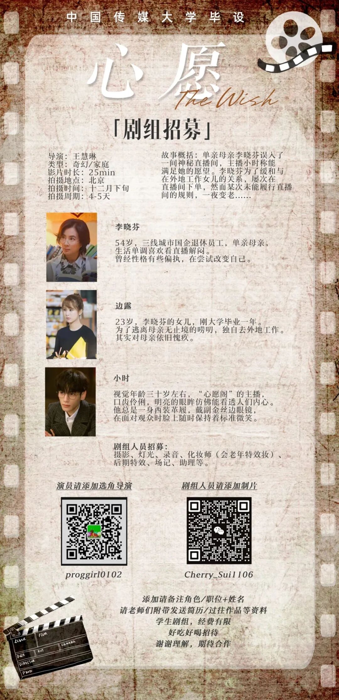 本栏目发布组讯由小编采集与业界共享,组讯如有变化请以实际情况为准。如果遇到剧组收费情况,请谨慎对待并私信官微@戏客Seeker,我们会公示问题组讯并及时处理。谢谢。