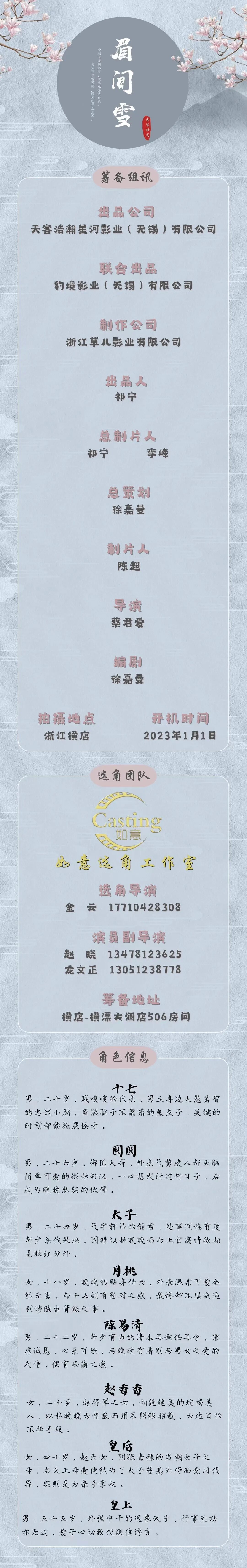 本栏目发布组讯由小编采集与业界共享,组讯如有变化请以实际情况为准。如果遇到剧组收费情况,请谨慎对待并私信官微@戏客Seeker,我们会公示问题组讯并及时处理。谢谢。