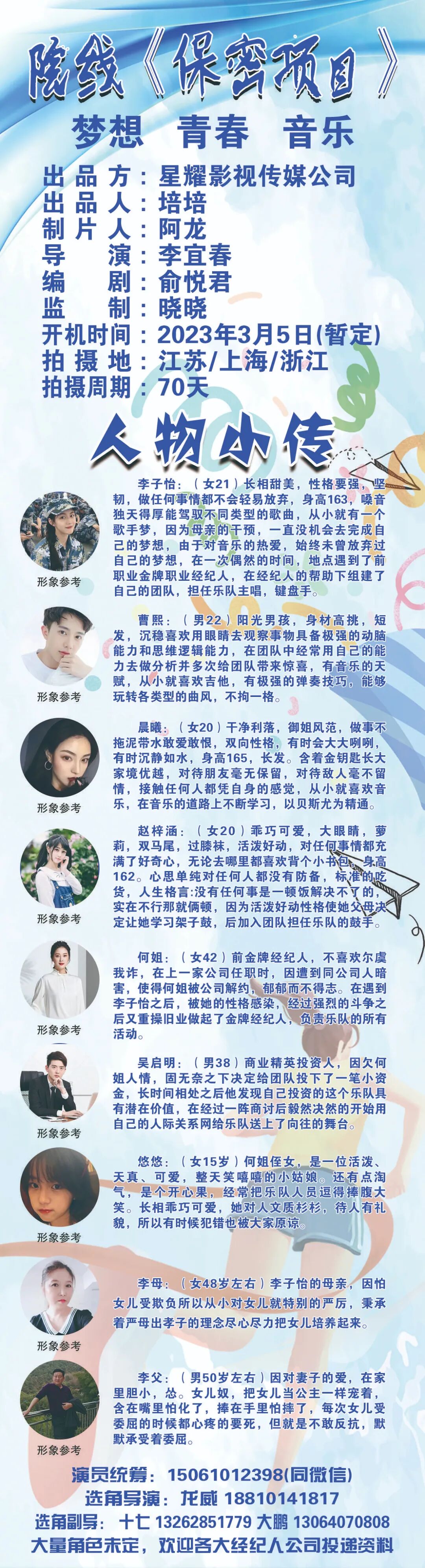 大量角色未定,欢迎各大经纪人、经纪公司投递资料。