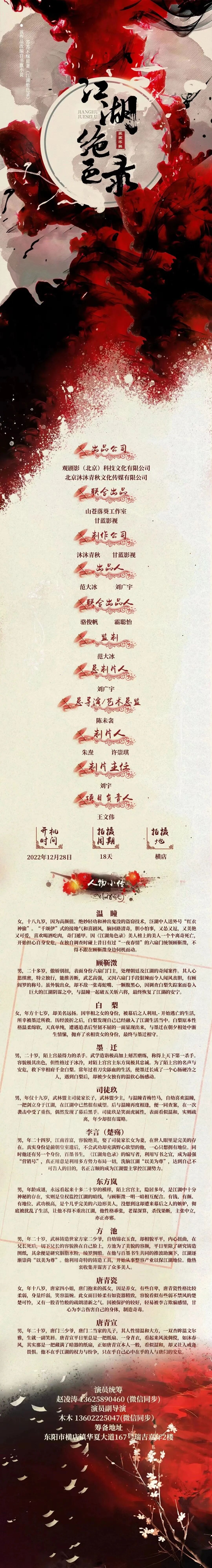 演员统筹:赵凌涛 13625890460(微信同步)