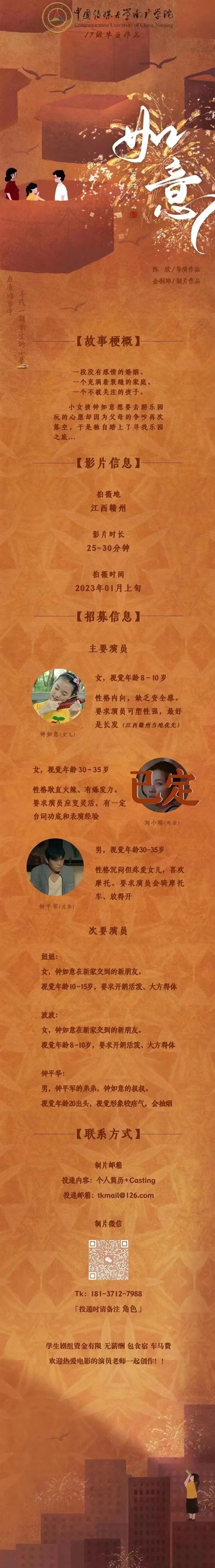选角导演:欣欣 17865565985(微信同步)