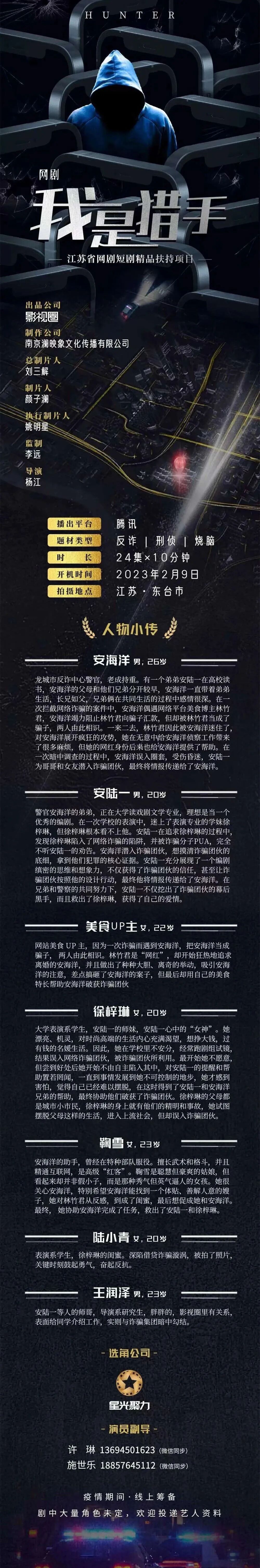 疫情期间线上筹备,剧中大量角色未定,欢迎投递艺人资料。