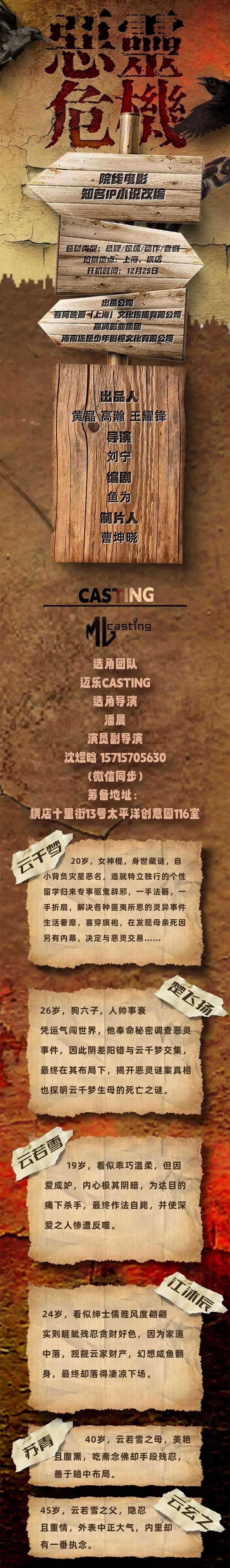 选角负责人:张梵宇 13520496876(微信同步)