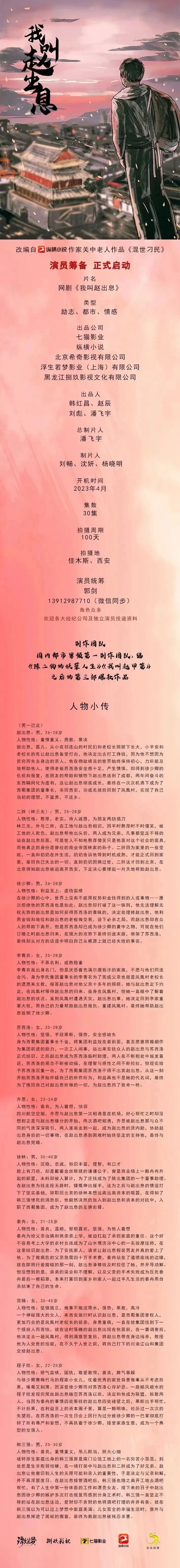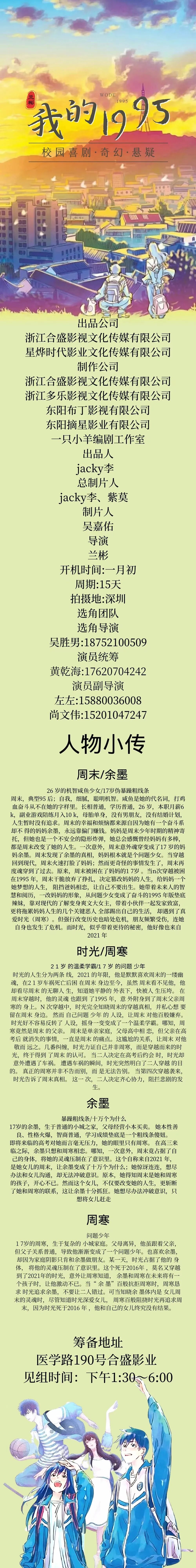 剧中众多年龄段角色未定,欢迎大家踊跃投递
