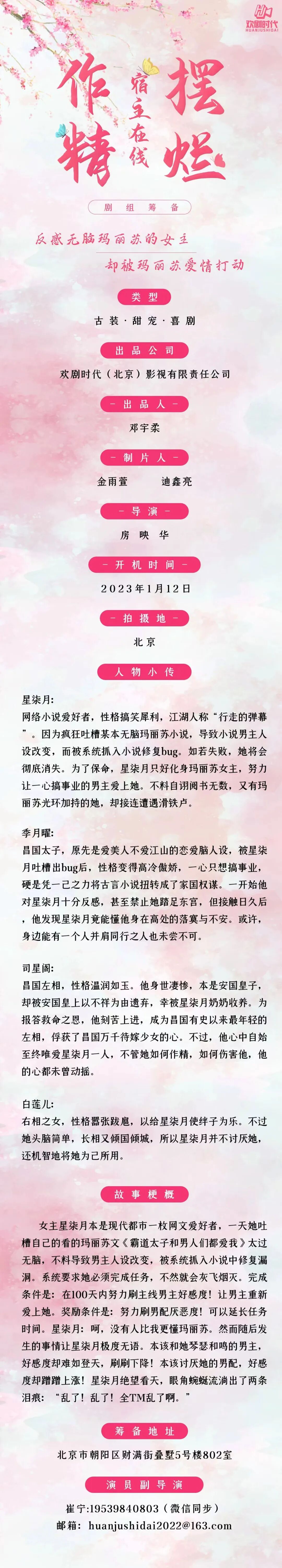 角色众多,欢迎各大经纪公司及独立演员投递资料。