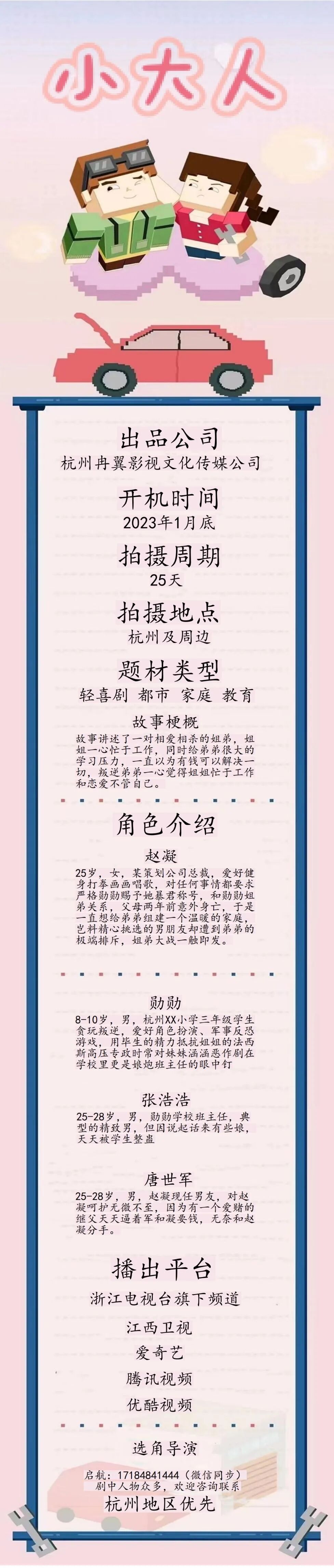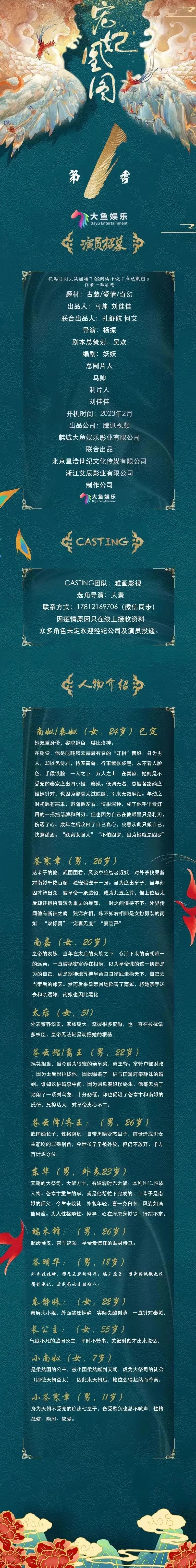 疫情原因只在线上接收资料,众多角色未定,欢迎经纪公司及演员投递。