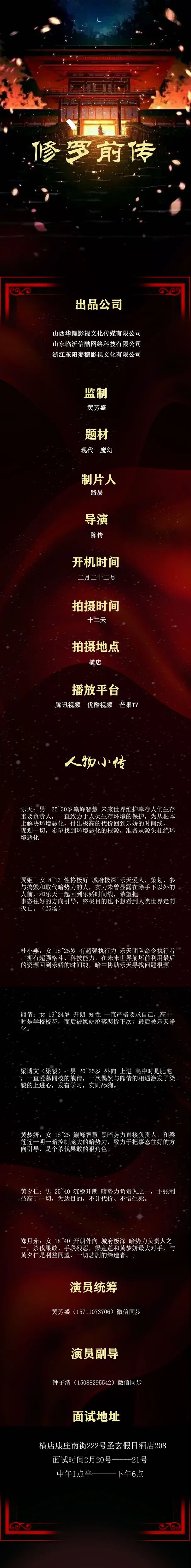 本栏目发布组讯由小编采集与业界共享,组讯如有变化请以实际情况为准。如果遇到剧组收费情况,请谨慎对待并私信官微@戏客Seeker,我们会公示问题组讯并及时处理。谢谢。