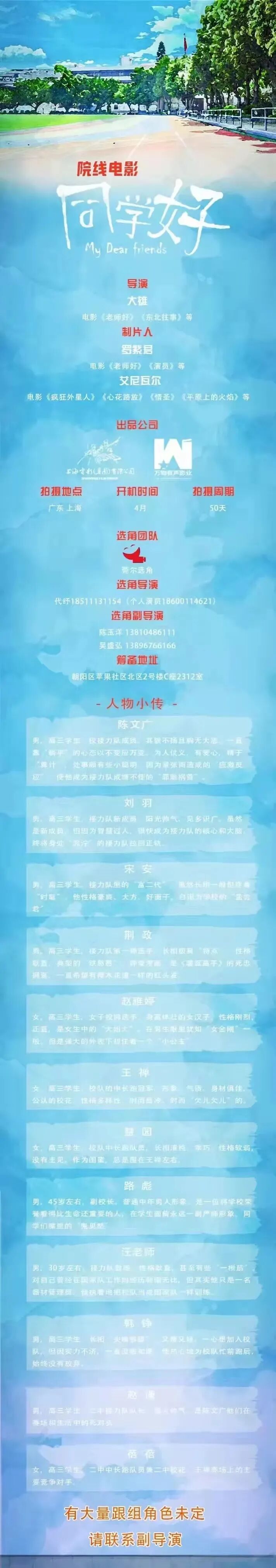 以上所需要的演员,人物众多,发简历自我介绍视频和演戏片段,视频定人.
