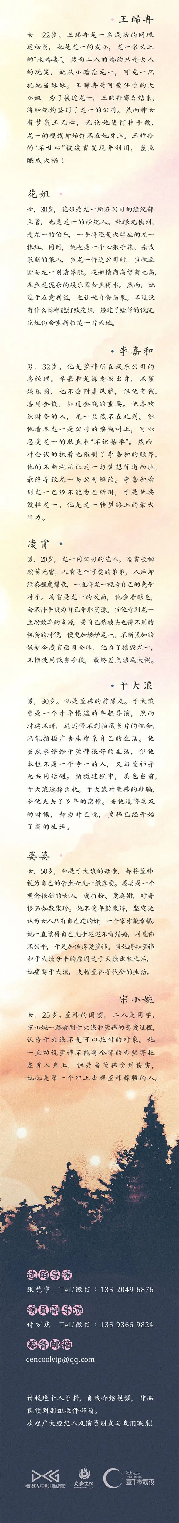 本栏目发布组讯由小编采集与业界共享,组讯如有变化请以实际情况为准。如果遇到剧组收费情况,请谨慎对待并私信官微@戏客Seeker,我们会公示问题组讯并及时处理。谢谢。