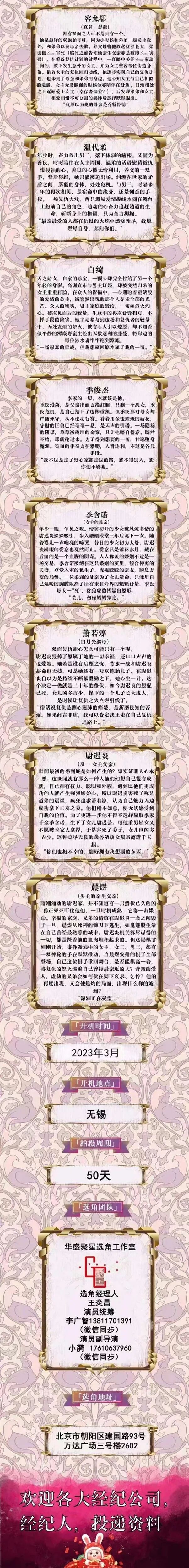 请投递个人资料,自我介绍视频,作品视频到剧组收件邮箱。欢迎广大经纪人及演员朋友与我们联系!