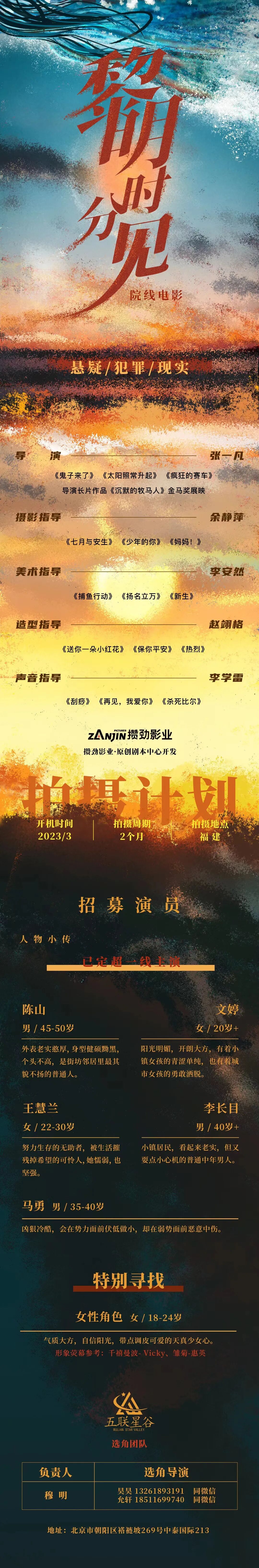 本栏目发布组讯由小编采集与业界共享,组讯如有变化请以实际情况为准。如果遇到剧组收费情况,请谨慎对待并私信官微@戏客Seeker,我们会公示问题组讯并及时处理。谢谢。