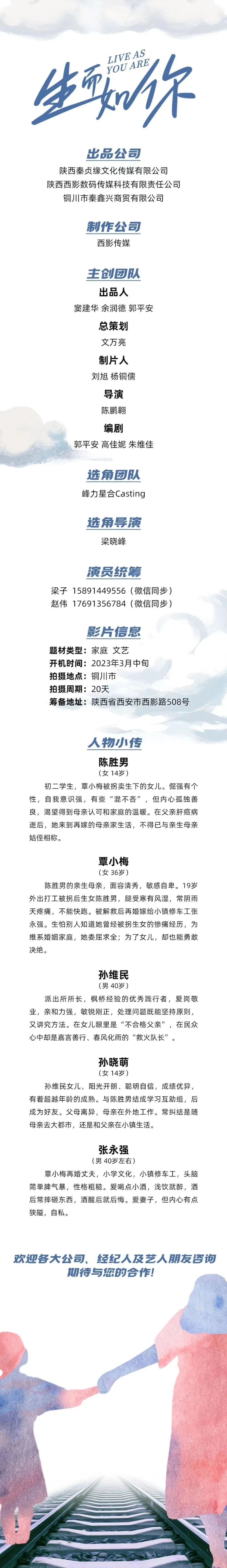 本栏目发布组讯由小编采集与业界共享,组讯如有变化请以实际情况为准。如果遇到剧组收费情况,请谨慎对待并私信官微@戏客Seeker,我们会公示问题组讯并及时处理。谢谢。